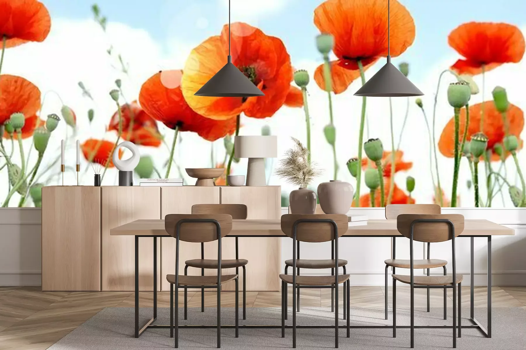 Het materiaal Standard is een hoogwaardig latexmateriaal met een glad, mat oppervlak. Dankzij de HP Latex-printtechnologie zijn de kleuren intens, duurzaam en UV-bestendig, waardoor het patroon jarenlang een onberispelijke uitstraling behoudt. Vervuilde oppervlakken kunnen voorzichtig worden afgeveegd met een droge doek. De maximale breedte van één baan bedraagt 95 cm of 105 cm – afhankelijk van de bestelde fotobehangbreedte. Bij grotere afmetingen wordt het patroon verdeeld over meerdere gelijkmatige banen. Het fotobehang wordt rand-aan-randaangebracht, wat vrijwel onzichtbare naden mogelijk maakt.