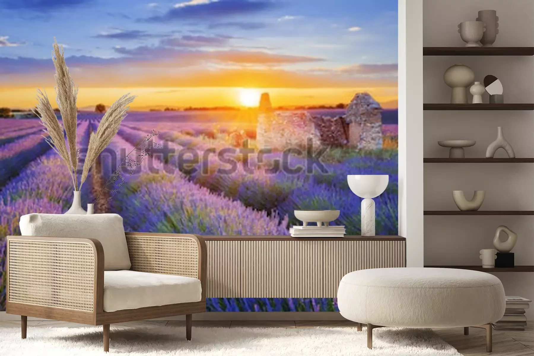 Fotobehang Veld met paarse lavendel bloemen