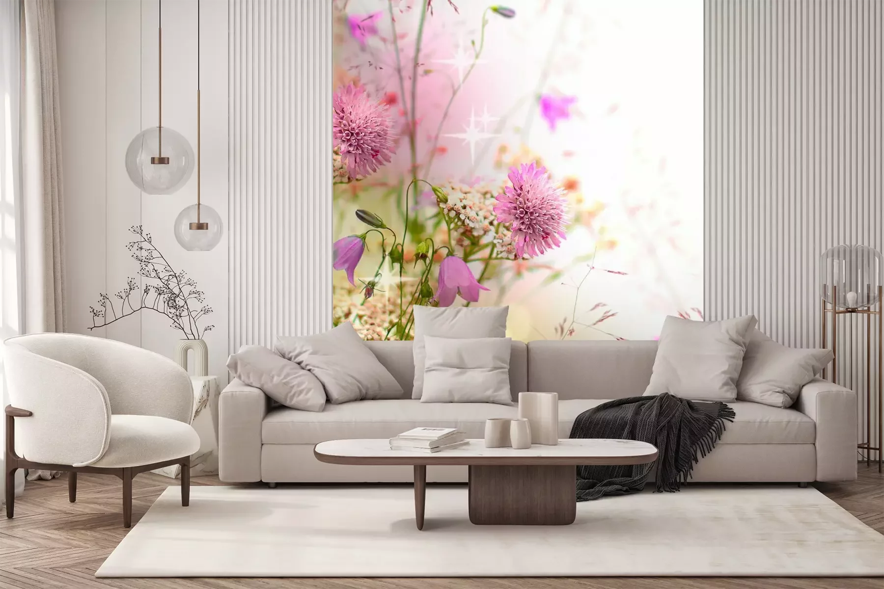 Het materiaal Premium+ is een gestructureerd vinyl op vlies met een gewicht van 255 g/m², dat kleine oneffenheden in de muur effectief camoufleert. De subtiele structuur van fijn zand geeft het oppervlak een exclusieve uitstraling, terwijl de halfmatte afwerking de diepte van de kleuren benadrukt. Het materiaal is dampdoorlatend, waardoor het ook in de keuken en badkamer kan worden gebruikt. De maximale breedte van één baan bedraagt 100 cm – bij grotere afmetingen wordt het fotobehang in meerdere gelijke banen verdeeld. De lijm wordt direct op de muur aangebracht en het behang wordt rand-aan-rand geplakt, wat zorgt voor een esthetisch resultaat zonder zichtbare naden. Het oppervlak kan gemakkelijk worden schoongemaakt door het voorzichtig af te nemen met een vochtige doek.