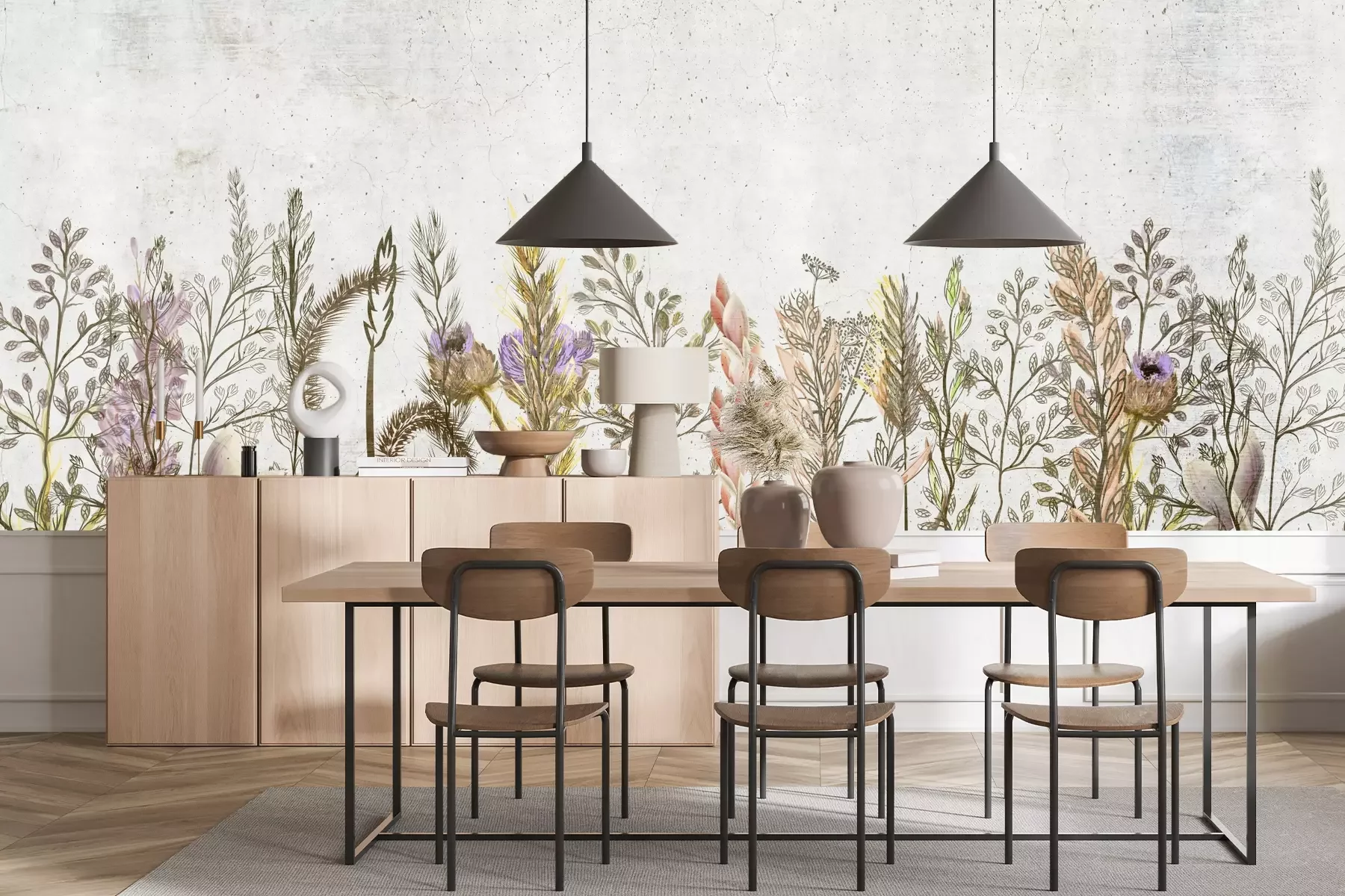 Het materiaal Premium+ is een gestructureerd vinyl op vlies met een gewicht van 255 g/m², dat kleine oneffenheden in de muur effectief camoufleert. De subtiele structuur van fijn zand geeft het oppervlak een exclusieve uitstraling, terwijl de halfmatte afwerking de diepte van de kleuren benadrukt. Het materiaal is dampdoorlatend, waardoor het ook in de keuken en badkamer kan worden gebruikt. De maximale breedte van één baan bedraagt 100 cm – bij grotere afmetingen wordt het fotobehang in meerdere gelijke banen verdeeld. De lijm wordt direct op de muur aangebracht en het behang wordt rand-aan-rand geplakt, wat zorgt voor een esthetisch resultaat zonder zichtbare naden. Het oppervlak kan gemakkelijk worden schoongemaakt door het voorzichtig af te nemen met een vochtige doek.