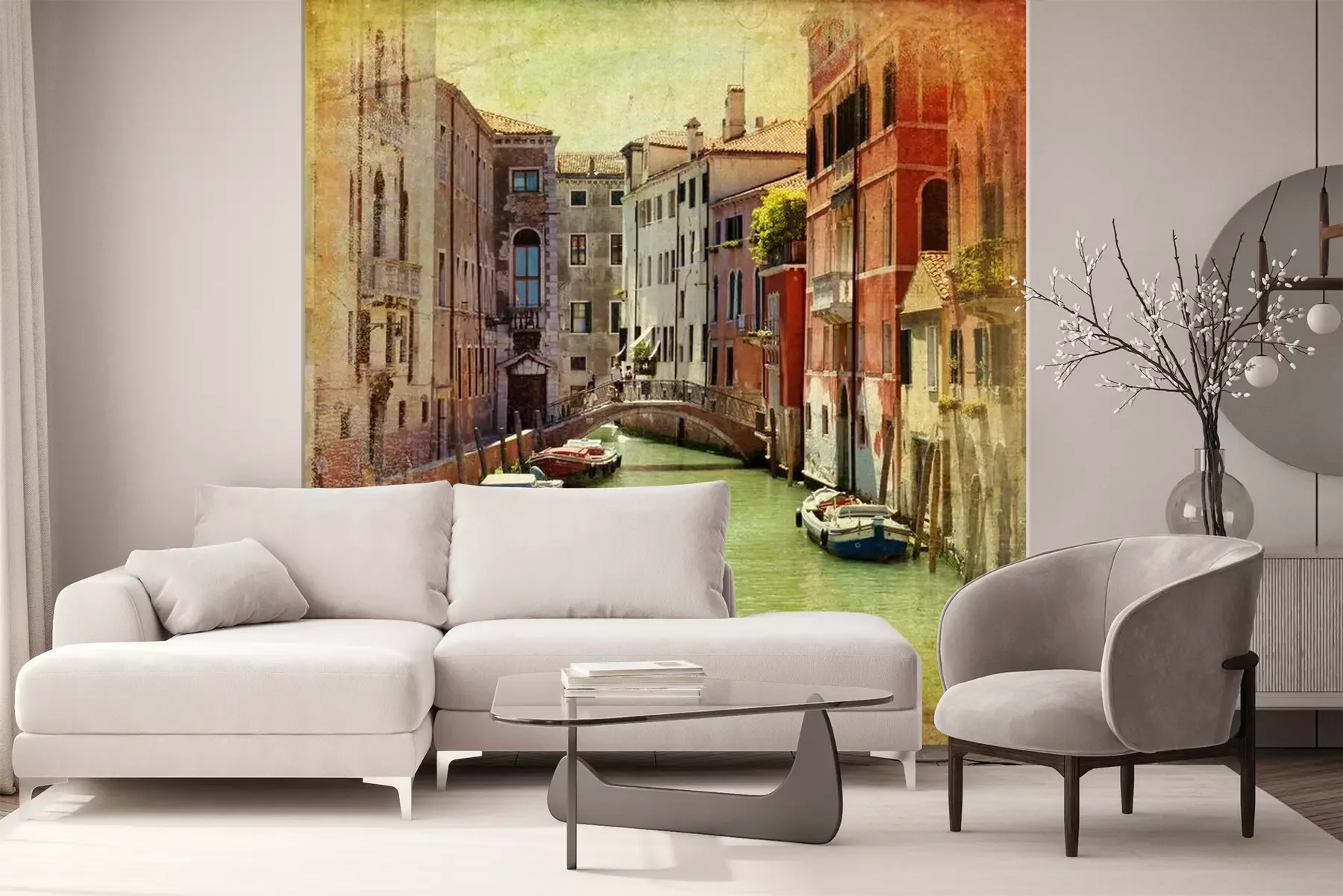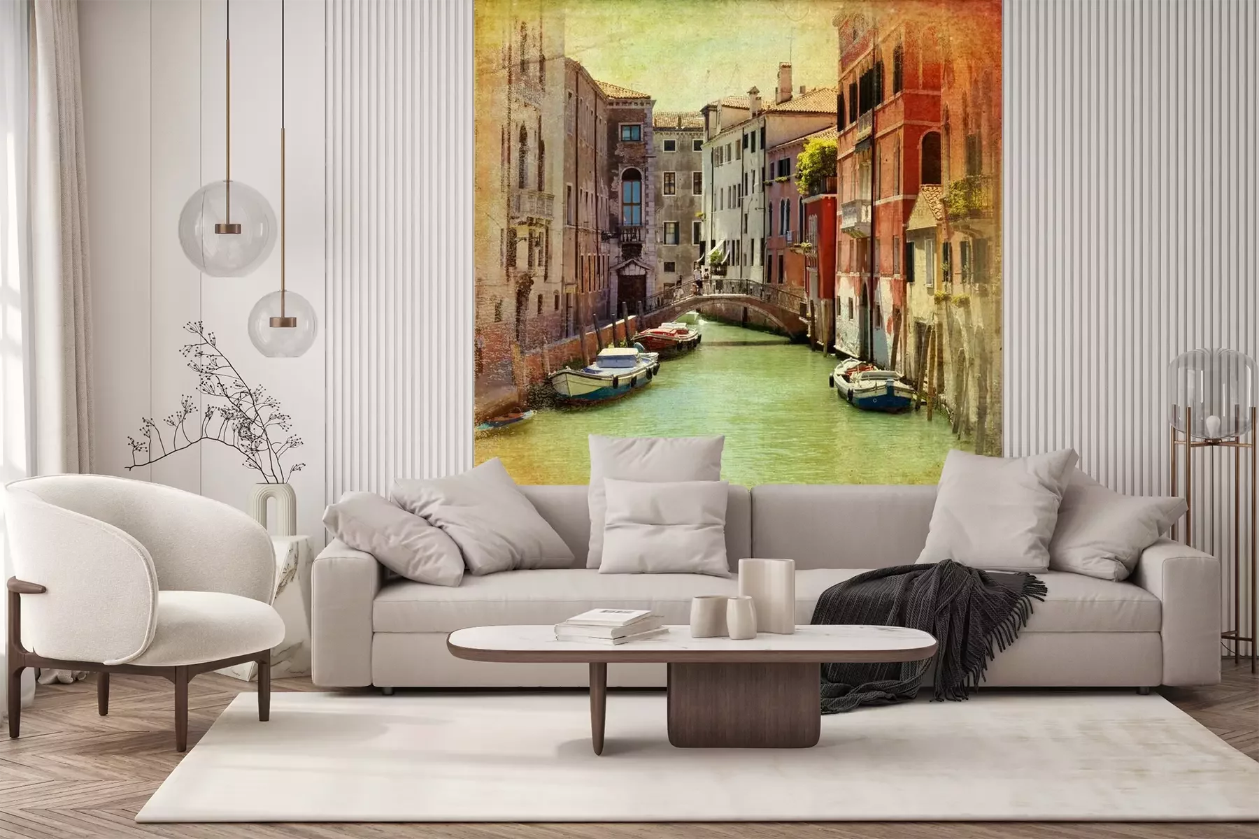Het materiaal Premium+ is een gestructureerd vinyl op vlies met een gewicht van 255 g/m², dat kleine oneffenheden in de muur effectief camoufleert. De subtiele structuur van fijn zand geeft het oppervlak een exclusieve uitstraling, terwijl de halfmatte afwerking de diepte van de kleuren benadrukt. Het materiaal is dampdoorlatend, waardoor het ook in de keuken en badkamer kan worden gebruikt. De maximale breedte van één baan bedraagt 100 cm – bij grotere afmetingen wordt het fotobehang in meerdere gelijke banen verdeeld. De lijm wordt direct op de muur aangebracht en het behang wordt rand-aan-rand geplakt, wat zorgt voor een esthetisch resultaat zonder zichtbare naden. Het oppervlak kan gemakkelijk worden schoongemaakt door het voorzichtig af te nemen met een vochtige doek.