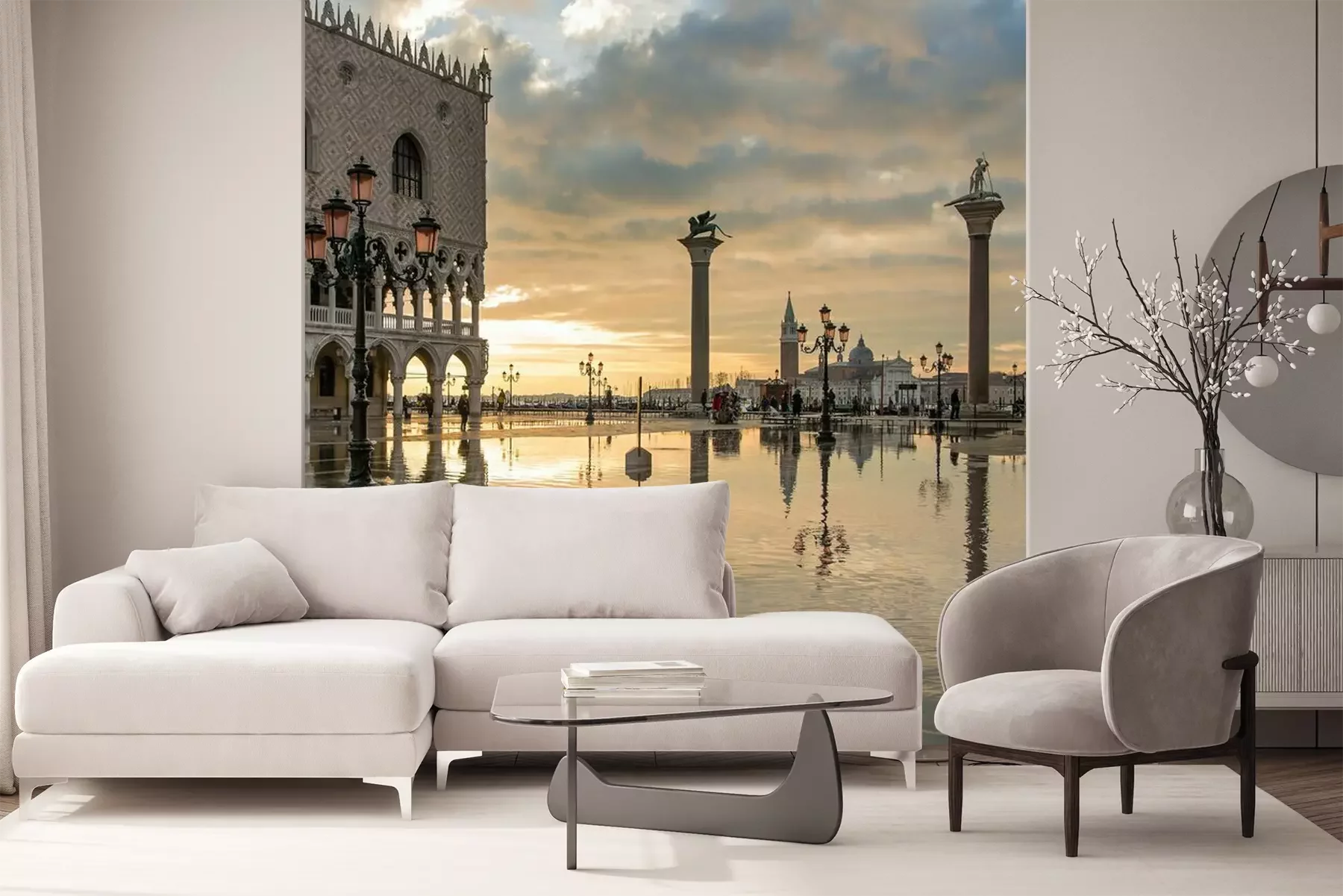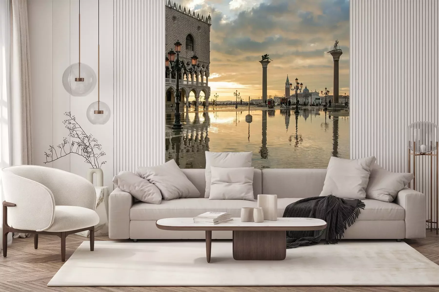 Het materiaal Premium+ is een gestructureerd vinyl op vlies met een gewicht van 255 g/m², dat kleine oneffenheden in de muur effectief camoufleert. De subtiele structuur van fijn zand geeft het oppervlak een exclusieve uitstraling, terwijl de halfmatte afwerking de diepte van de kleuren benadrukt. Het materiaal is dampdoorlatend, waardoor het ook in de keuken en badkamer kan worden gebruikt. De maximale breedte van één baan bedraagt 100 cm – bij grotere afmetingen wordt het fotobehang in meerdere gelijke banen verdeeld. De lijm wordt direct op de muur aangebracht en het behang wordt rand-aan-rand geplakt, wat zorgt voor een esthetisch resultaat zonder zichtbare naden. Het oppervlak kan gemakkelijk worden schoongemaakt door het voorzichtig af te nemen met een vochtige doek.