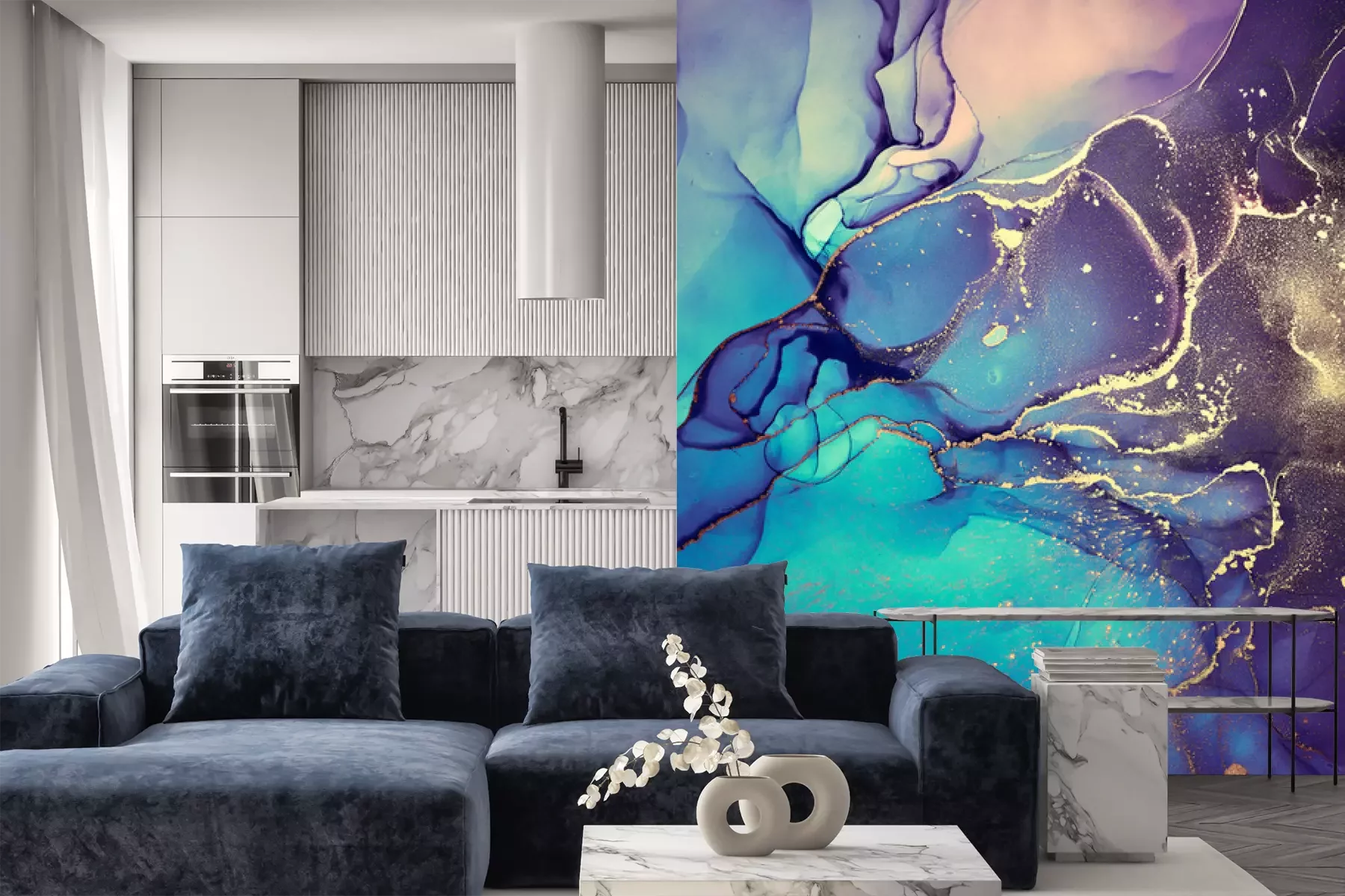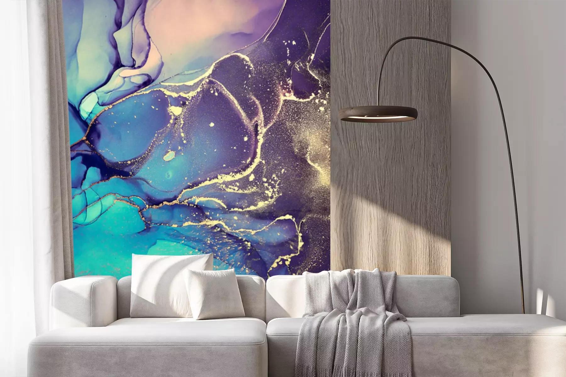 Turkoois aquarel marmeringFotobehang