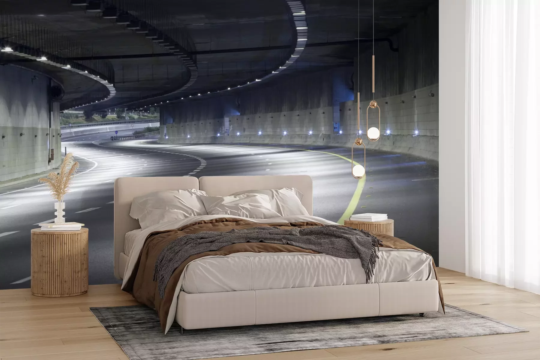 Het materiaal Premium+ is een gestructureerd vinyl op vlies met een gewicht van 255 g/m², dat kleine oneffenheden in de muur effectief camoufleert. De subtiele structuur van fijn zand geeft het oppervlak een exclusieve uitstraling, terwijl de halfmatte afwerking de diepte van de kleuren benadrukt. Het materiaal is dampdoorlatend, waardoor het ook in de keuken en badkamer kan worden gebruikt. De maximale breedte van één baan bedraagt 100 cm – bij grotere afmetingen wordt het fotobehang in meerdere gelijke banen verdeeld. De lijm wordt direct op de muur aangebracht en het behang wordt rand-aan-rand geplakt, wat zorgt voor een esthetisch resultaat zonder zichtbare naden. Het oppervlak kan gemakkelijk worden schoongemaakt door het voorzichtig af te nemen met een vochtige doek.