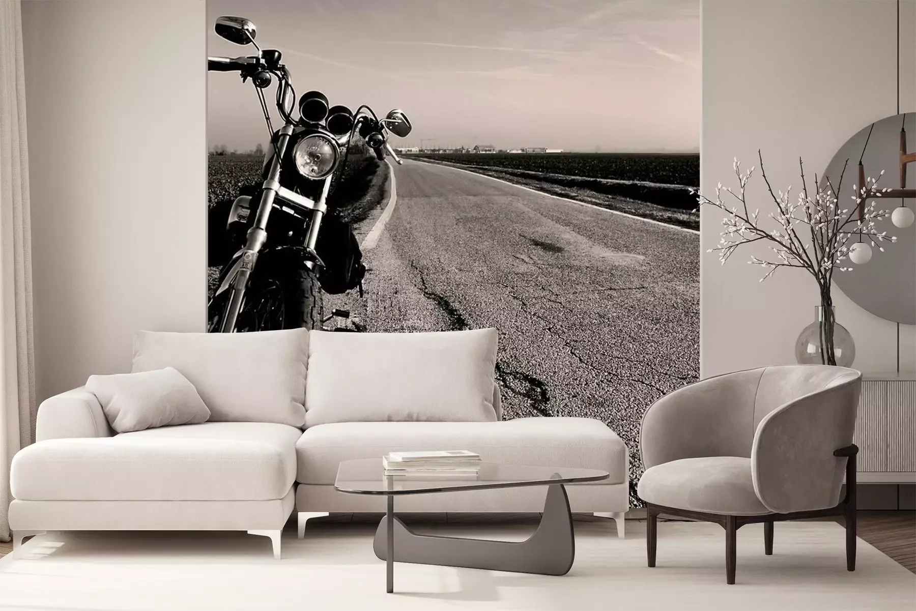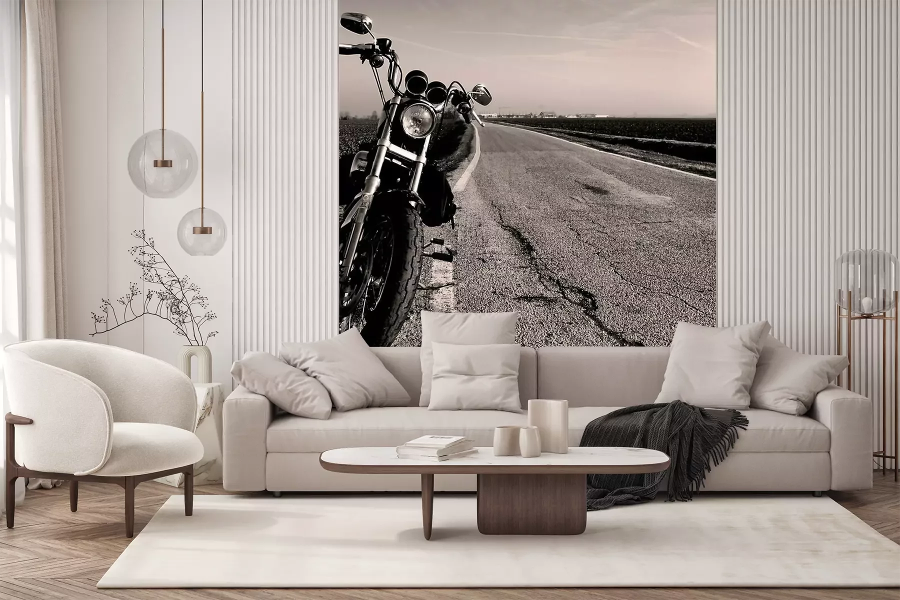 Het materiaal Premium+ is een gestructureerd vinyl op vlies met een gewicht van 255 g/m², dat kleine oneffenheden in de muur effectief camoufleert. De subtiele structuur van fijn zand geeft het oppervlak een exclusieve uitstraling, terwijl de halfmatte afwerking de diepte van de kleuren benadrukt. Het materiaal is dampdoorlatend, waardoor het ook in de keuken en badkamer kan worden gebruikt. De maximale breedte van één baan bedraagt 100 cm – bij grotere afmetingen wordt het fotobehang in meerdere gelijke banen verdeeld. De lijm wordt direct op de muur aangebracht en het behang wordt rand-aan-rand geplakt, wat zorgt voor een esthetisch resultaat zonder zichtbare naden. Het oppervlak kan gemakkelijk worden schoongemaakt door het voorzichtig af te nemen met een vochtige doek.