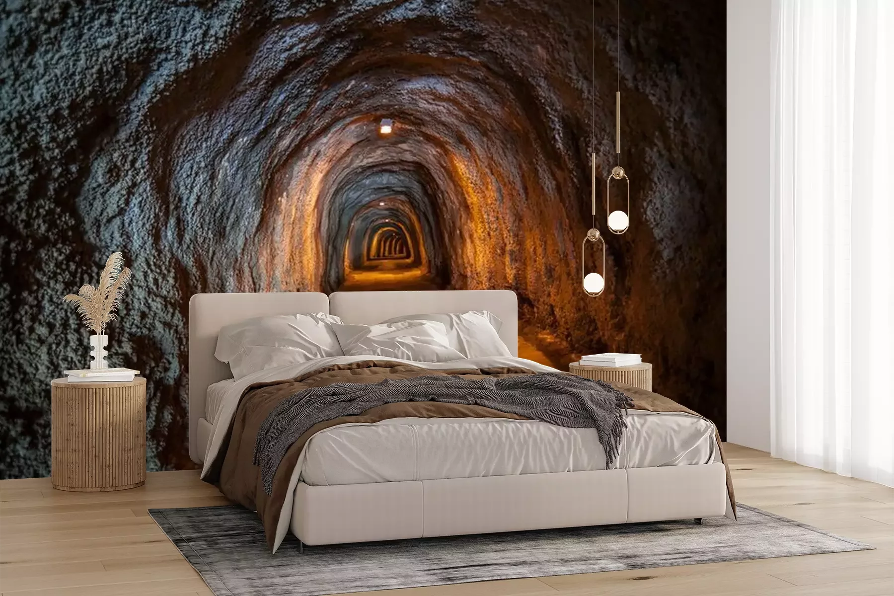Het materiaal Premium+ is een gestructureerd vinyl op vlies met een gewicht van 255 g/m², dat kleine oneffenheden in de muur effectief camoufleert. De subtiele structuur van fijn zand geeft het oppervlak een exclusieve uitstraling, terwijl de halfmatte afwerking de diepte van de kleuren benadrukt. Het materiaal is dampdoorlatend, waardoor het ook in de keuken en badkamer kan worden gebruikt. De maximale breedte van één baan bedraagt 100 cm – bij grotere afmetingen wordt het fotobehang in meerdere gelijke banen verdeeld. De lijm wordt direct op de muur aangebracht en het behang wordt rand-aan-rand geplakt, wat zorgt voor een esthetisch resultaat zonder zichtbare naden. Het oppervlak kan gemakkelijk worden schoongemaakt door het voorzichtig af te nemen met een vochtige doek.