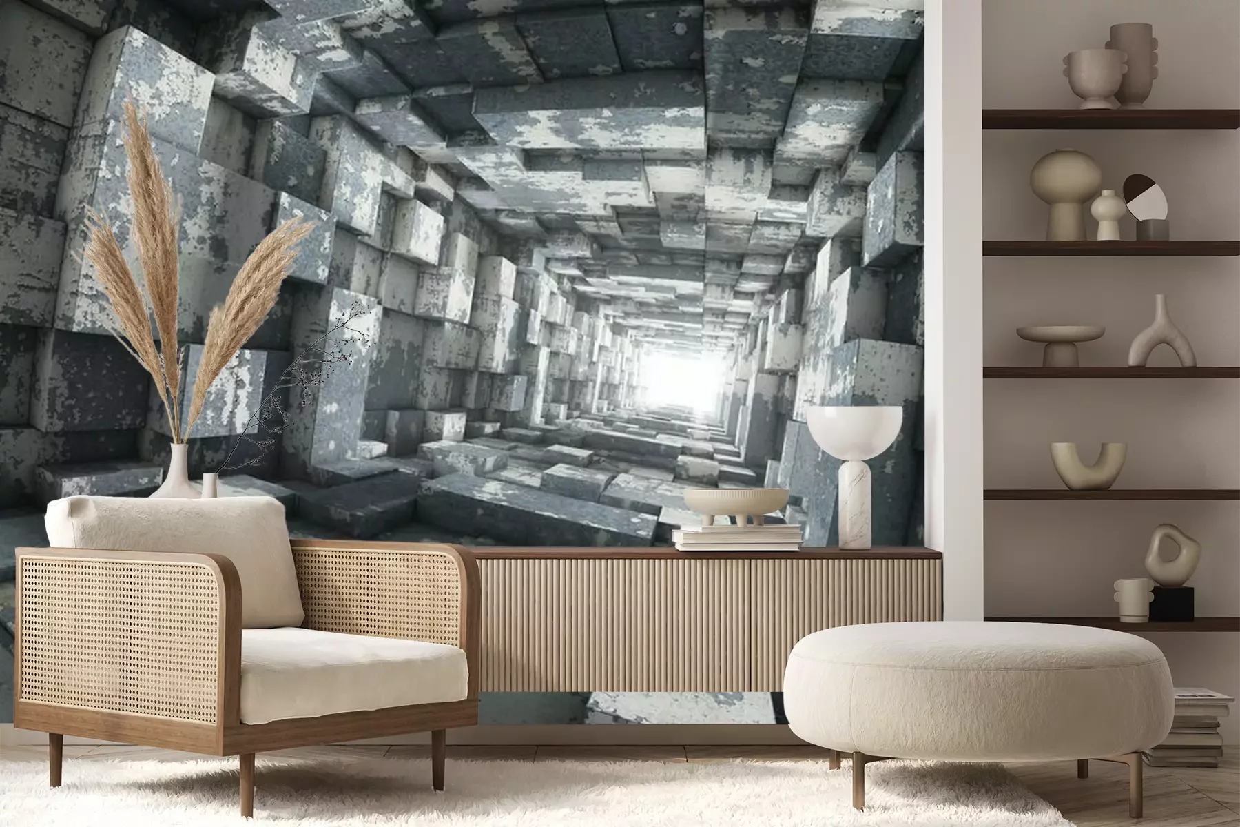 Zwart-wit tunnel op-art.Probleemloze bezorging verzorgd door vertrouwde vervoerders