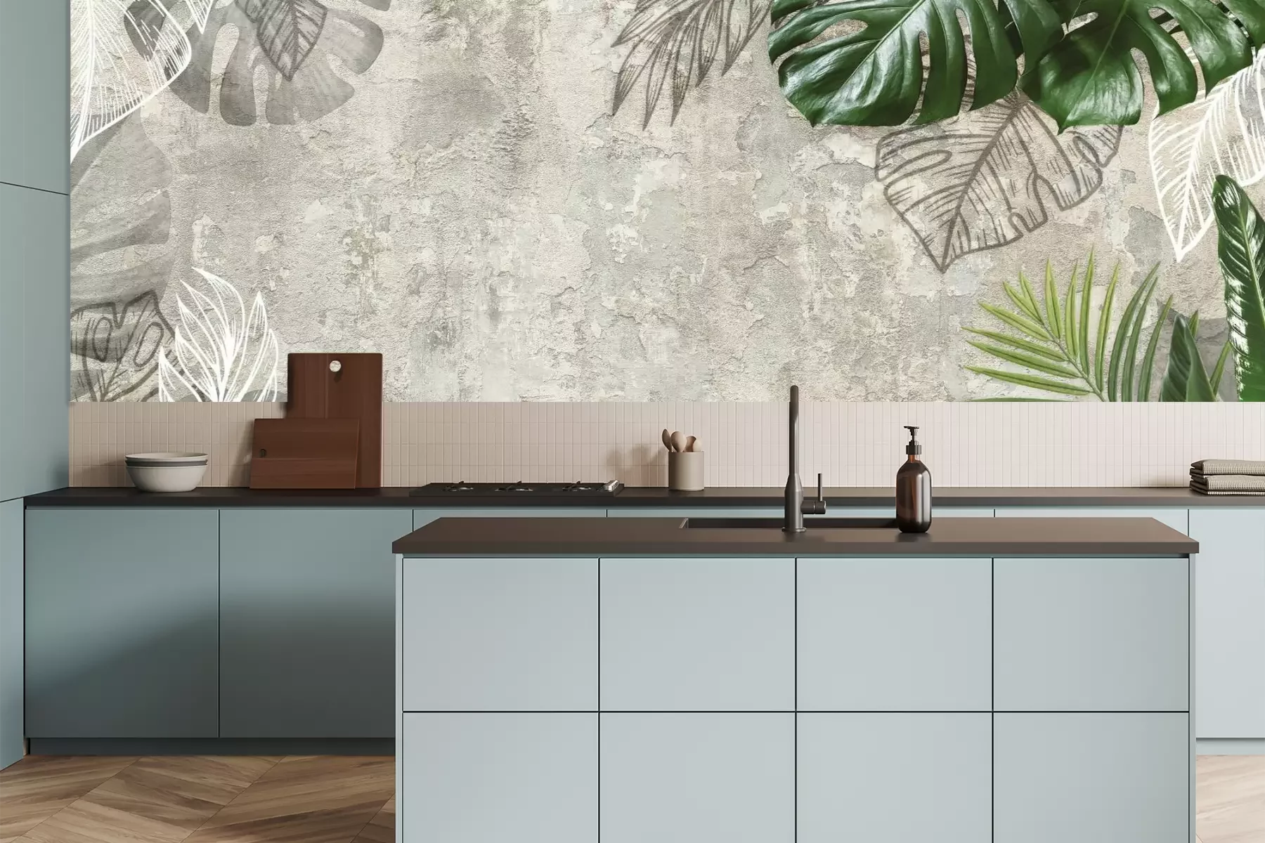 Het materiaal Premium is een glad vinyl op vlies, dat bestand is tegen uitrekken en vervorming. Het is dampdoorlatend – de muren kunnen vrij ademen – waardoor het geschikt is voor gebruik in de keuken en badkamer. Bij vervuiling kan het materiaal worden afgenomen met een vochtige doek. De maximale breedte van één baan bedraagt 95 of 105 cm, afhankelijk van de beschikbaarheid. Montage vindt plaats met de rand-aan-rand methode, wat een esthetisch resultaat zonder zichtbare naden oplevert. Omdat de lijm rechtstreeks op de muur wordt aangebracht, verloopt de installatie van het fotobehang snel en eenvoudig.