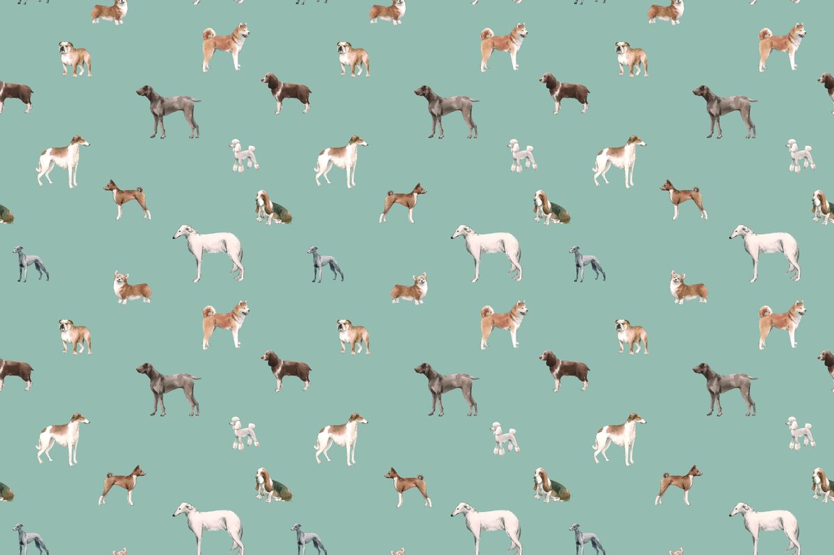 Fotobehang: Verschillende honden in een decoratief arrangement
