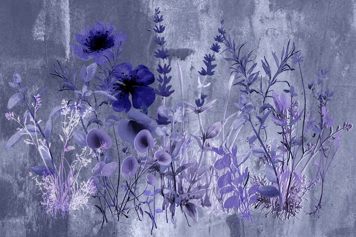 Fotobehang: Verschillende soorten paarse bloemen met lavendel