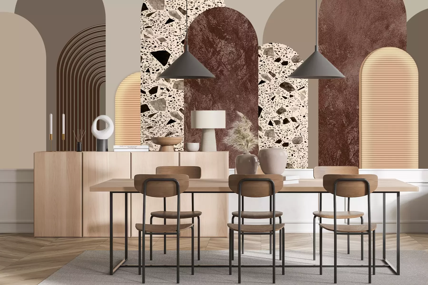 Het materiaal Standard is een hoogwaardig latexmateriaal met een glad, mat oppervlak. Dankzij de HP Latex-printtechnologie zijn de kleuren intens, duurzaam en UV-bestendig, waardoor het patroon jarenlang een onberispelijke uitstraling behoudt. Vervuilde oppervlakken kunnen voorzichtig worden afgeveegd met een droge doek. De maximale breedte van één baan bedraagt 95 cm of 105 cm – afhankelijk van de bestelde fotobehangbreedte. Bij grotere afmetingen wordt het patroon verdeeld over meerdere gelijkmatige banen. Het fotobehang wordt rand-aan-randaangebracht, wat vrijwel onzichtbare naden mogelijk maakt.