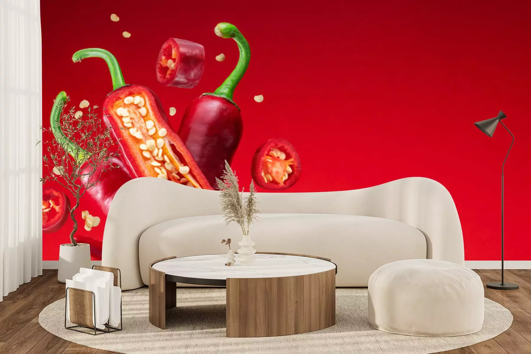 Fotobehang Verse Spaanse peperpeper met zaden