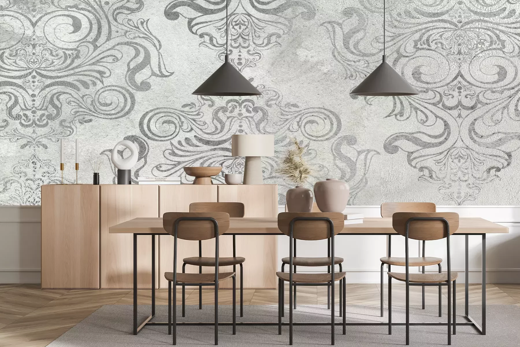 Het materiaal Standard is een hoogwaardig latexmateriaal met een glad, mat oppervlak. Dankzij de HP Latex-printtechnologie zijn de kleuren intens, duurzaam en UV-bestendig, waardoor het patroon jarenlang een onberispelijke uitstraling behoudt. Vervuilde oppervlakken kunnen voorzichtig worden afgeveegd met een droge doek. De maximale breedte van één baan bedraagt 95 cm of 105 cm – afhankelijk van de bestelde fotobehangbreedte. Bij grotere afmetingen wordt het patroon verdeeld over meerdere gelijkmatige banen. Het fotobehang wordt rand-aan-randaangebracht, wat vrijwel onzichtbare naden mogelijk maakt.