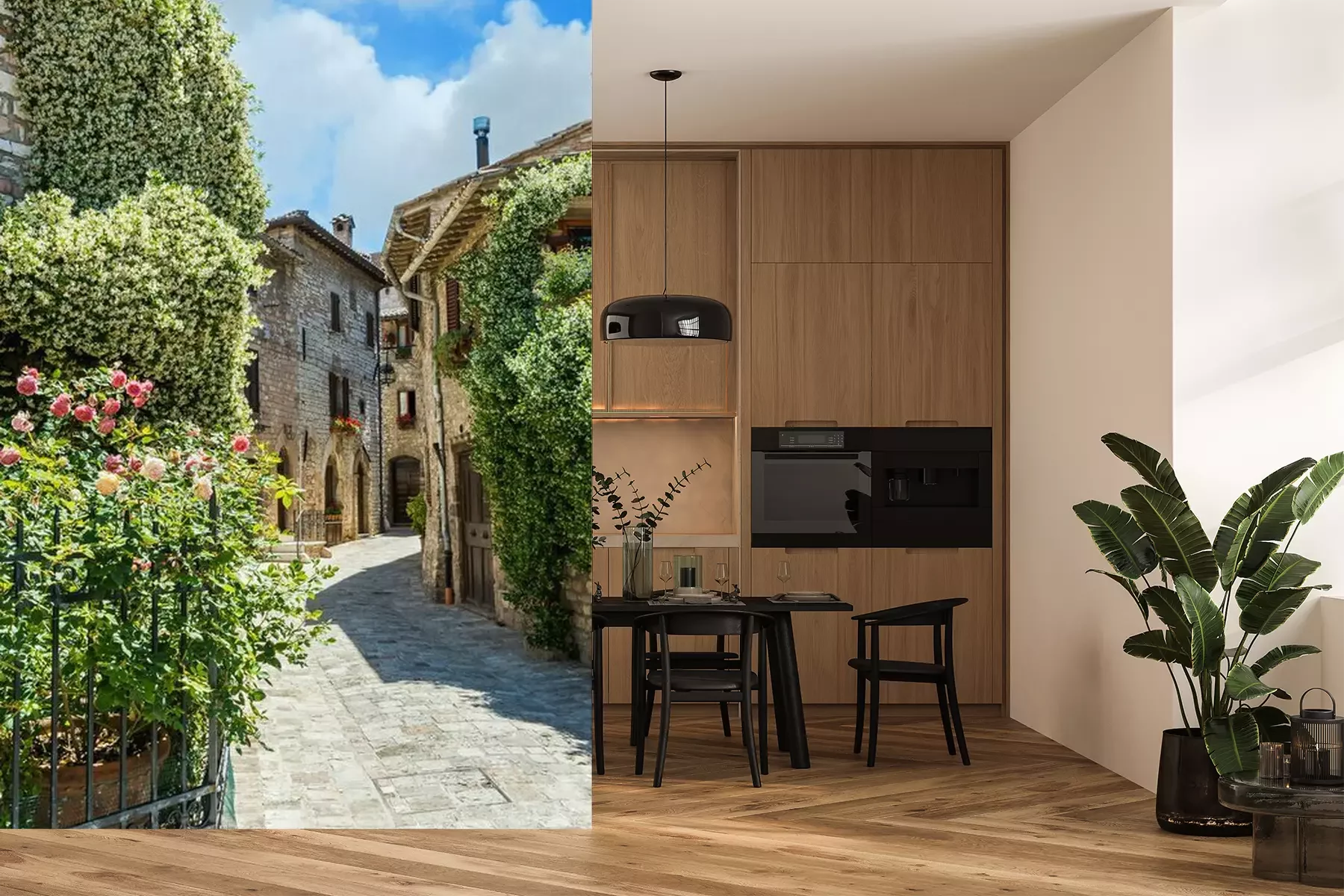 Het materiaal Premium is een glad vinyl op vlies, dat bestand is tegen uitrekken en vervorming. Het is dampdoorlatend – de muren kunnen vrij ademen – waardoor het geschikt is voor gebruik in de keuken en badkamer. Bij vervuiling kan het materiaal worden afgenomen met een vochtige doek. De maximale breedte van één baan bedraagt 95 of 105 cm, afhankelijk van de beschikbaarheid. Montage vindt plaats met de rand-aan-rand methode, wat een esthetisch resultaat zonder zichtbare naden oplevert. Omdat de lijm rechtstreeks op de muur wordt aangebracht, verloopt de installatie van het fotobehang snel en eenvoudig.