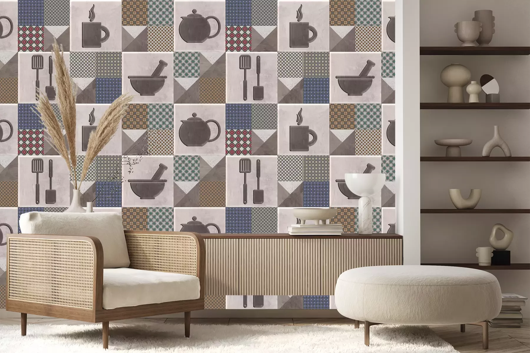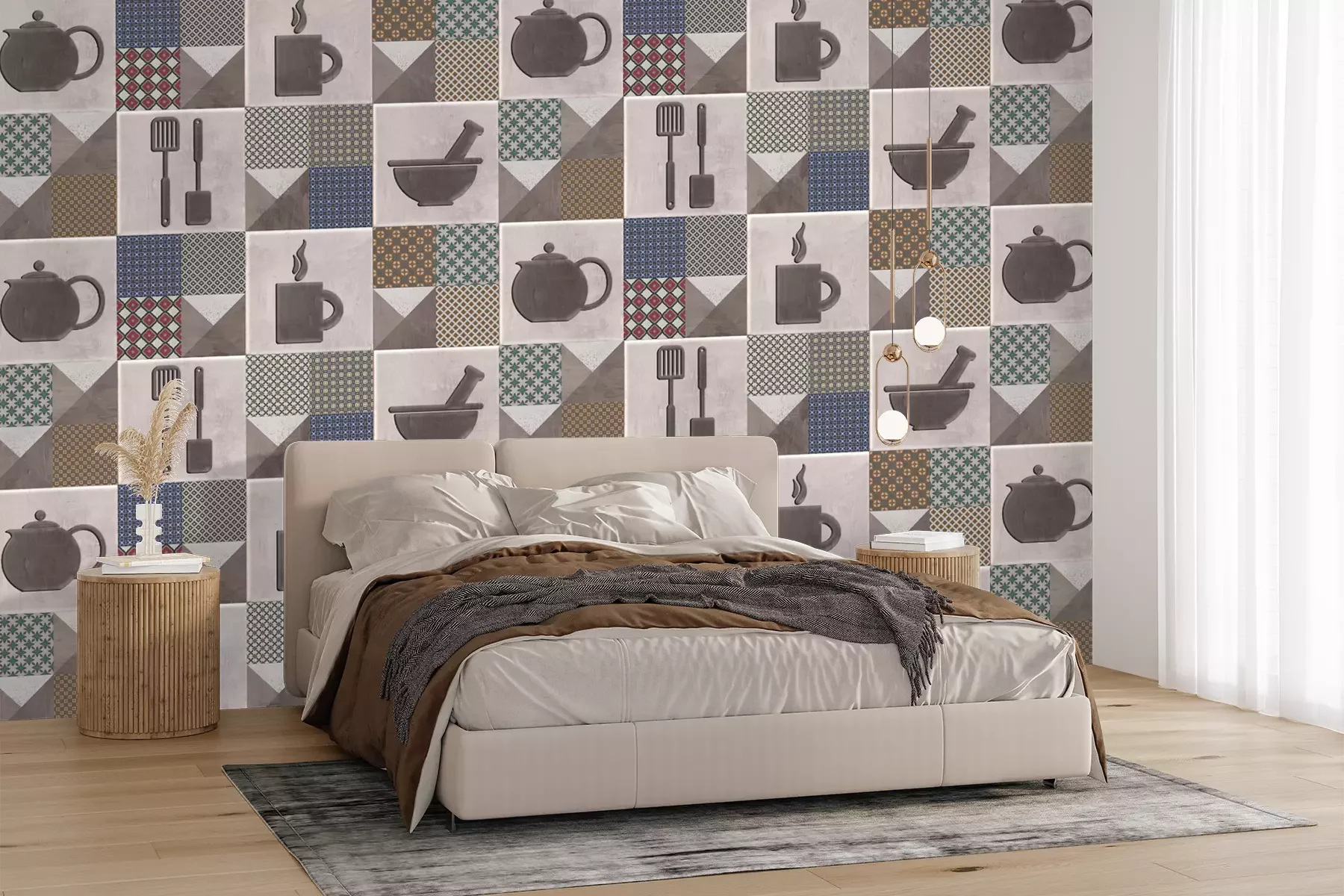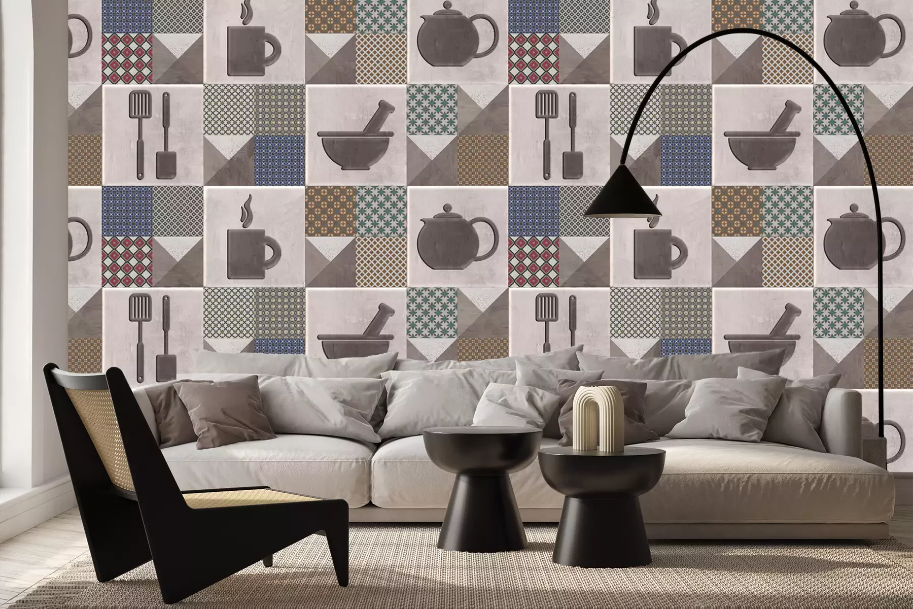 Het materiaal Premium is een glad vinyl op vlies, dat bestand is tegen uitrekken en vervorming. Het is dampdoorlatend – de muren kunnen vrij ademen – waardoor het geschikt is voor gebruik in de keuken en badkamer. Bij vervuiling kan het materiaal worden afgenomen met een vochtige doek. De maximale breedte van één baan bedraagt 95 of 105 cm, afhankelijk van de beschikbaarheid. Montage vindt plaats met de rand-aan-rand methode, wat een esthetisch resultaat zonder zichtbare naden oplevert. Omdat de lijm rechtstreeks op de muur wordt aangebracht, verloopt de installatie van het fotobehang snel en eenvoudig.