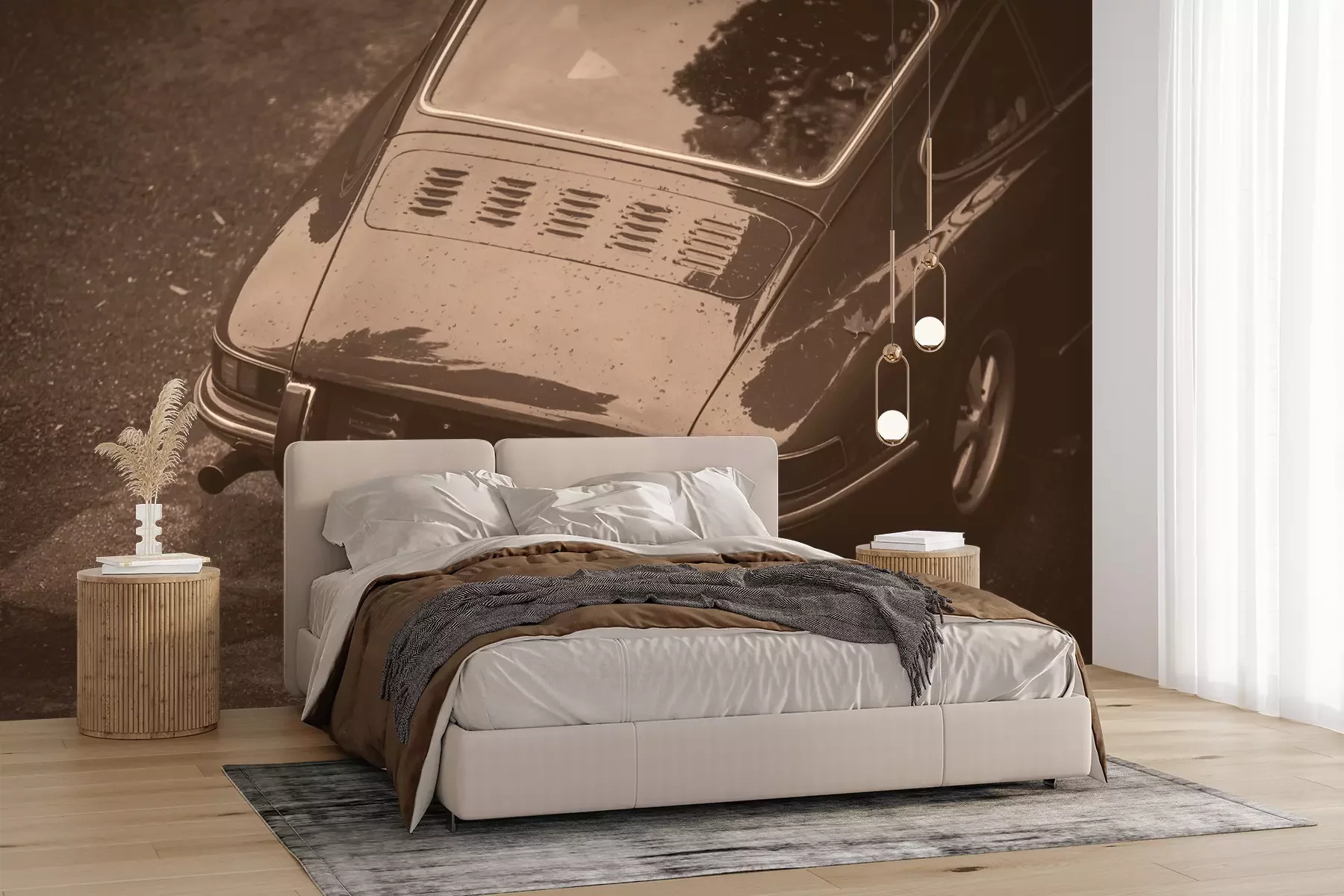 Het materiaal Premium+ is een gestructureerd vinyl op vlies met een gewicht van 255 g/m², dat kleine oneffenheden in de muur effectief camoufleert. De subtiele structuur van fijn zand geeft het oppervlak een exclusieve uitstraling, terwijl de halfmatte afwerking de diepte van de kleuren benadrukt. Het materiaal is dampdoorlatend, waardoor het ook in de keuken en badkamer kan worden gebruikt. De maximale breedte van één baan bedraagt 100 cm – bij grotere afmetingen wordt het fotobehang in meerdere gelijke banen verdeeld. De lijm wordt direct op de muur aangebracht en het behang wordt rand-aan-rand geplakt, wat zorgt voor een esthetisch resultaat zonder zichtbare naden. Het oppervlak kan gemakkelijk worden schoongemaakt door het voorzichtig af te nemen met een vochtige doek.