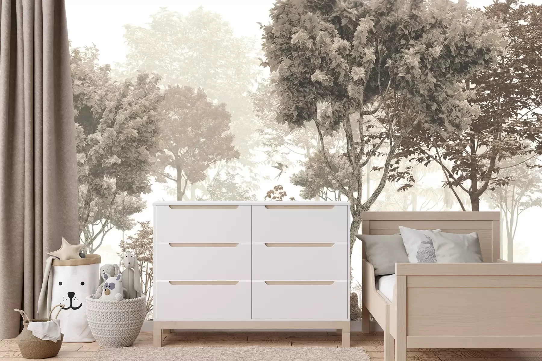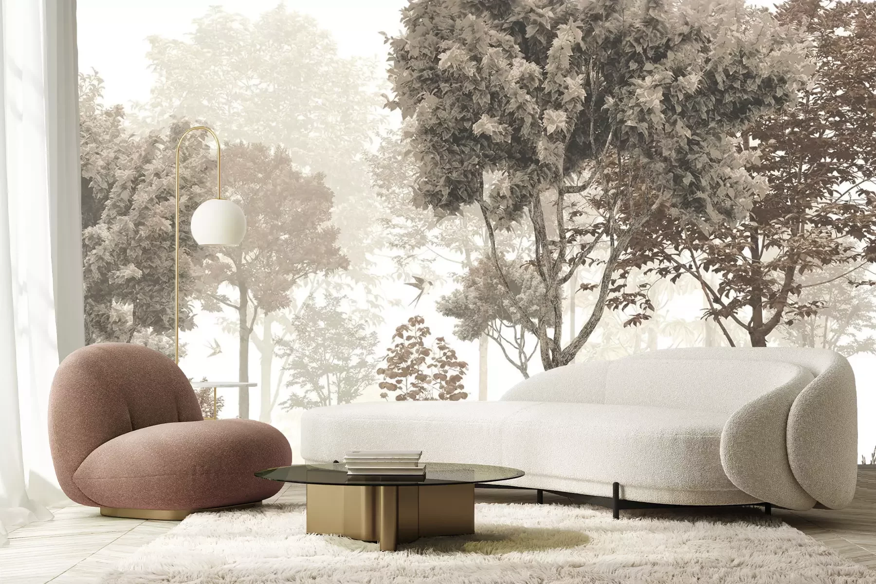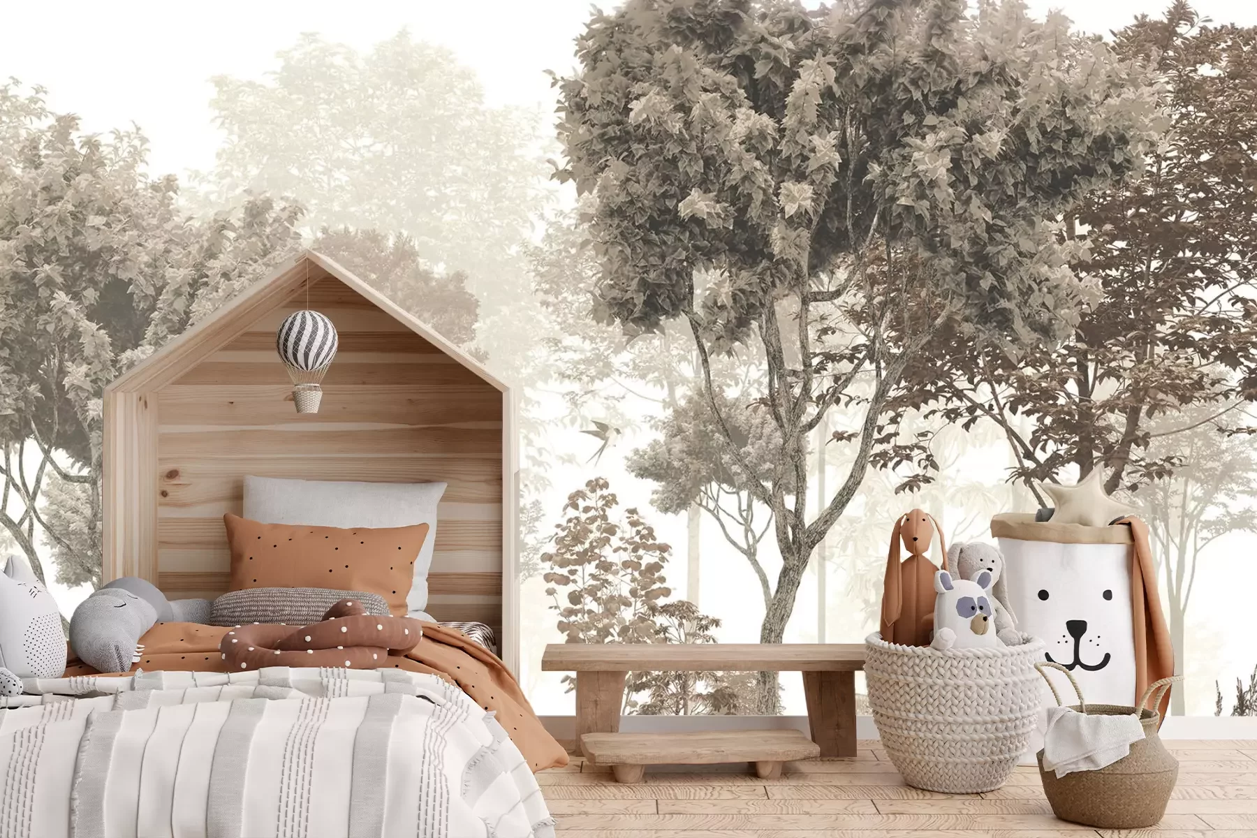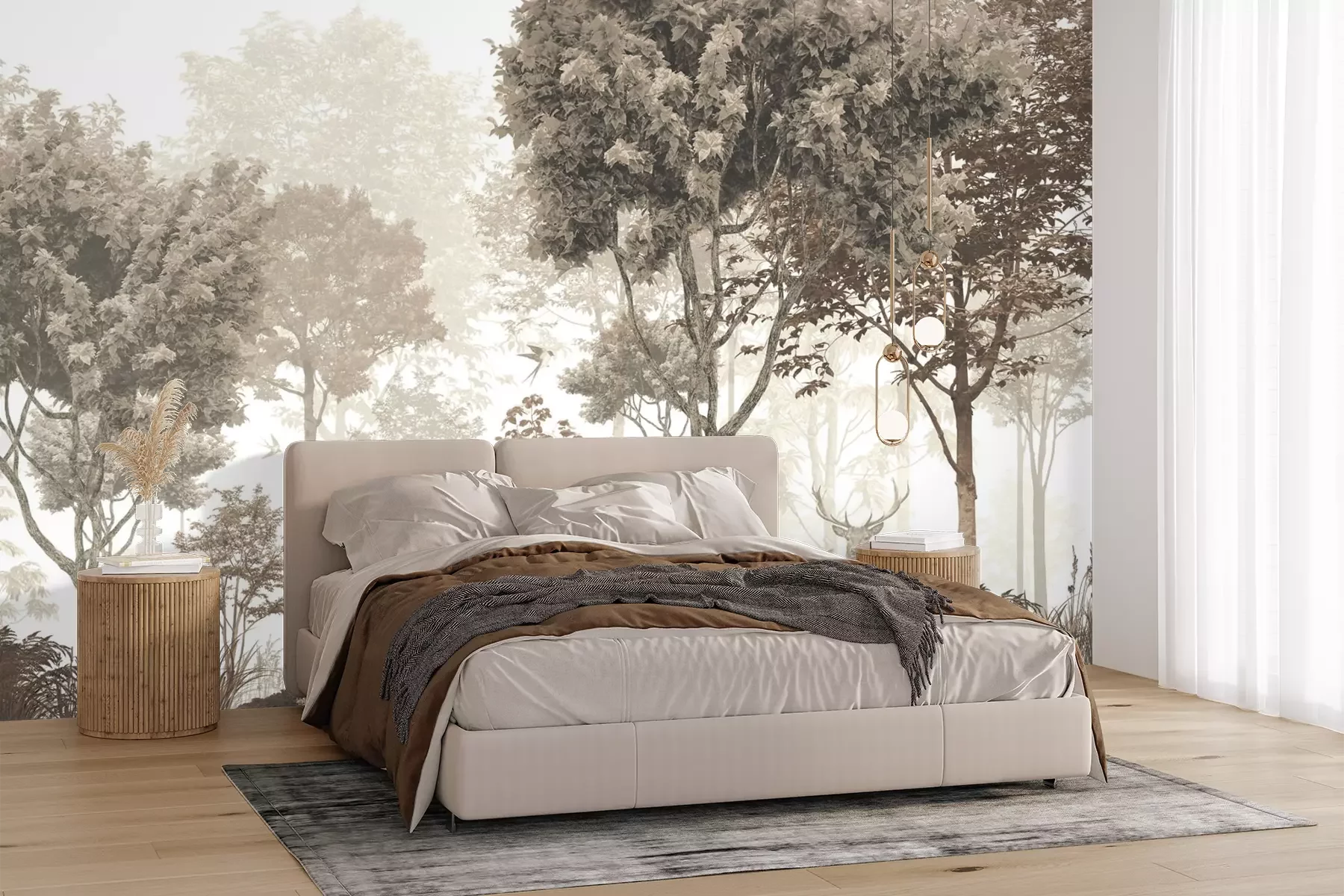 Vintage bosmotief met een hert en ree in een natuurlijk landschap