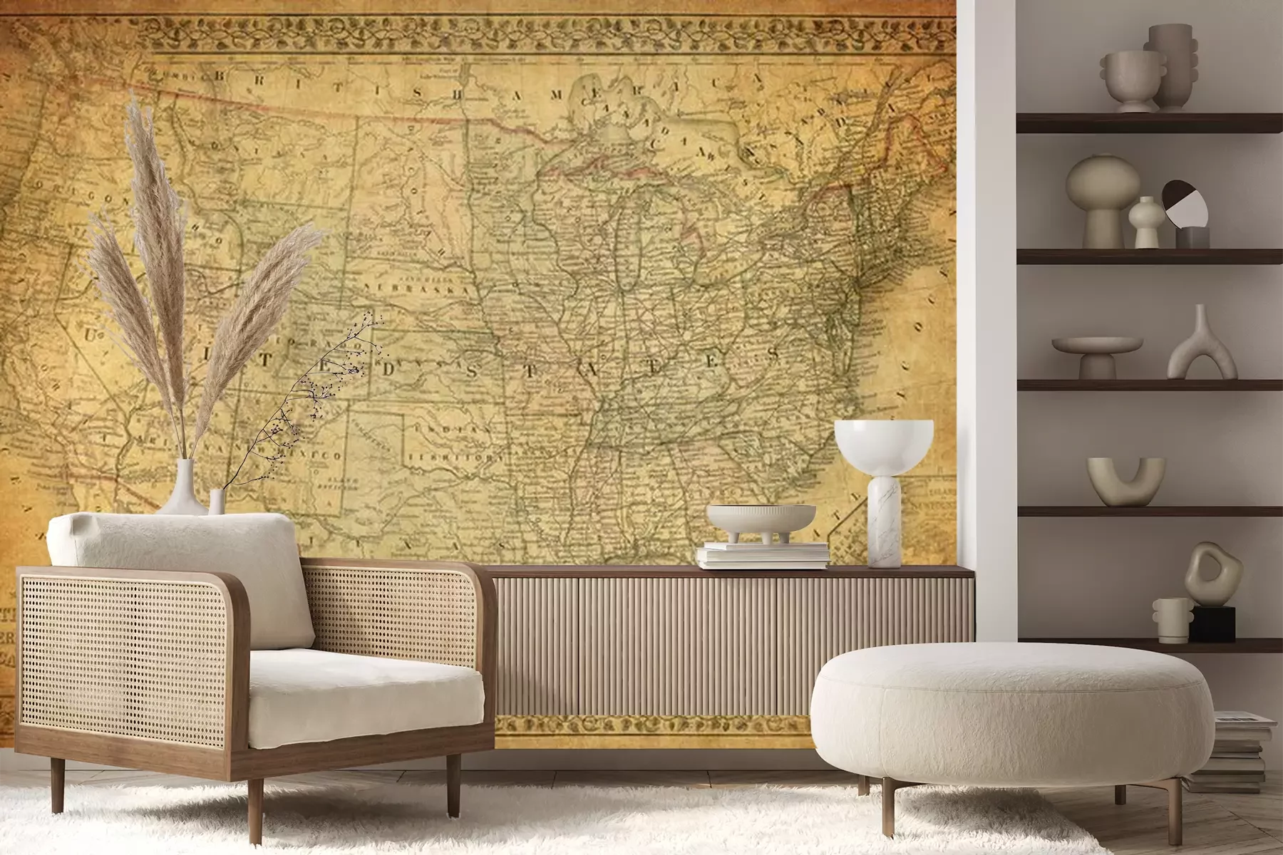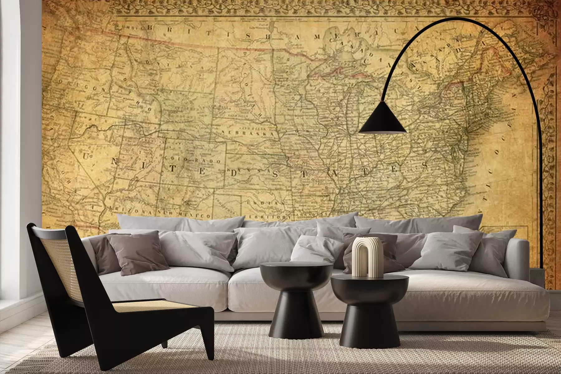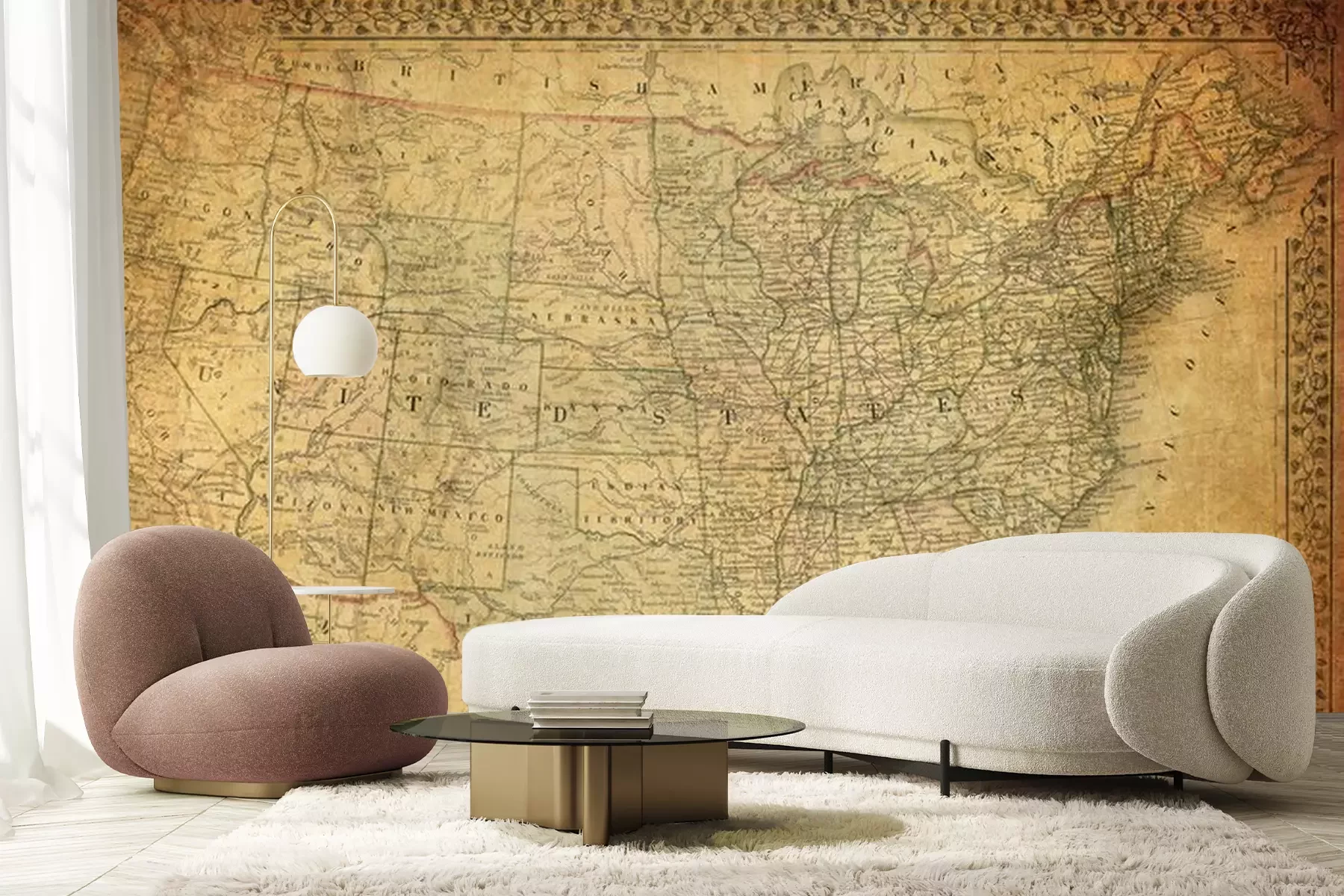 Oude sepia kaart x 19e eeuwFotobehang