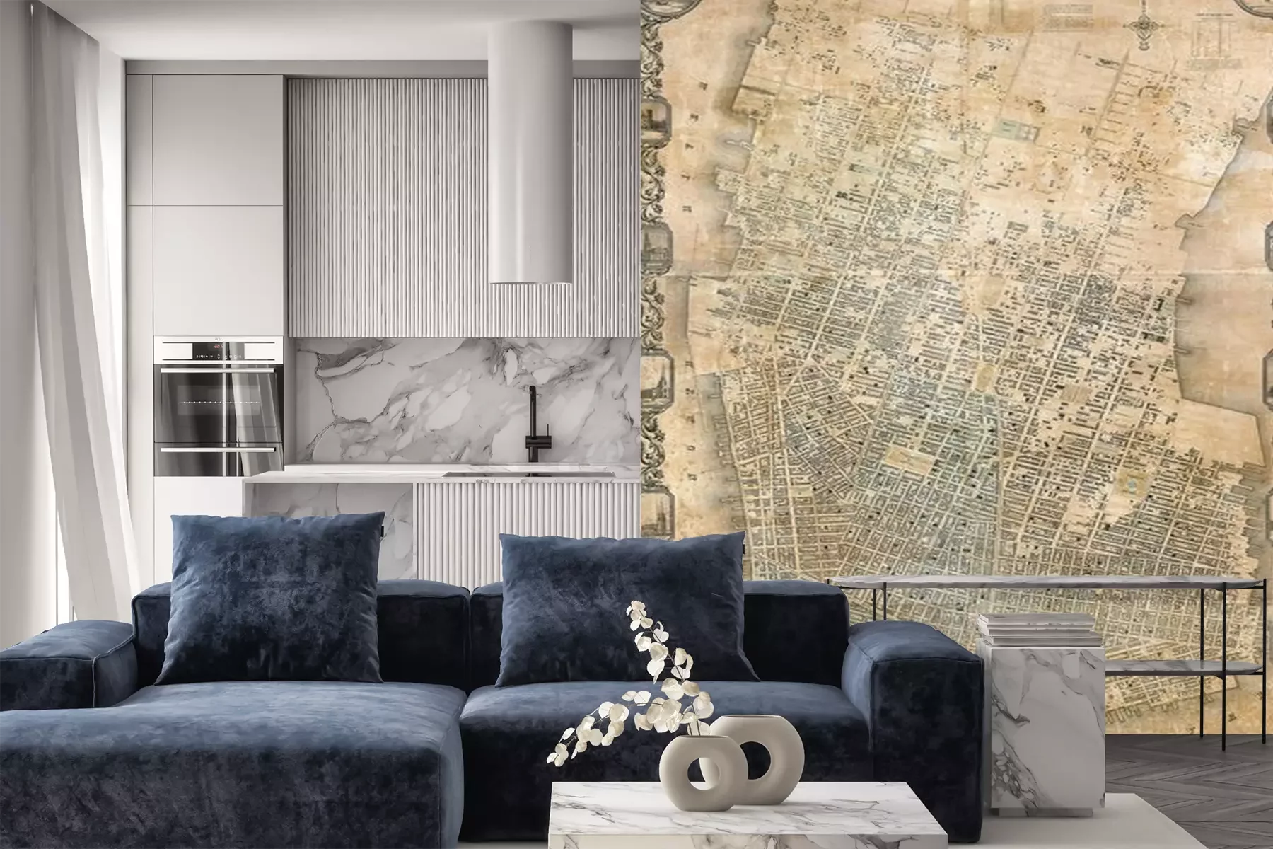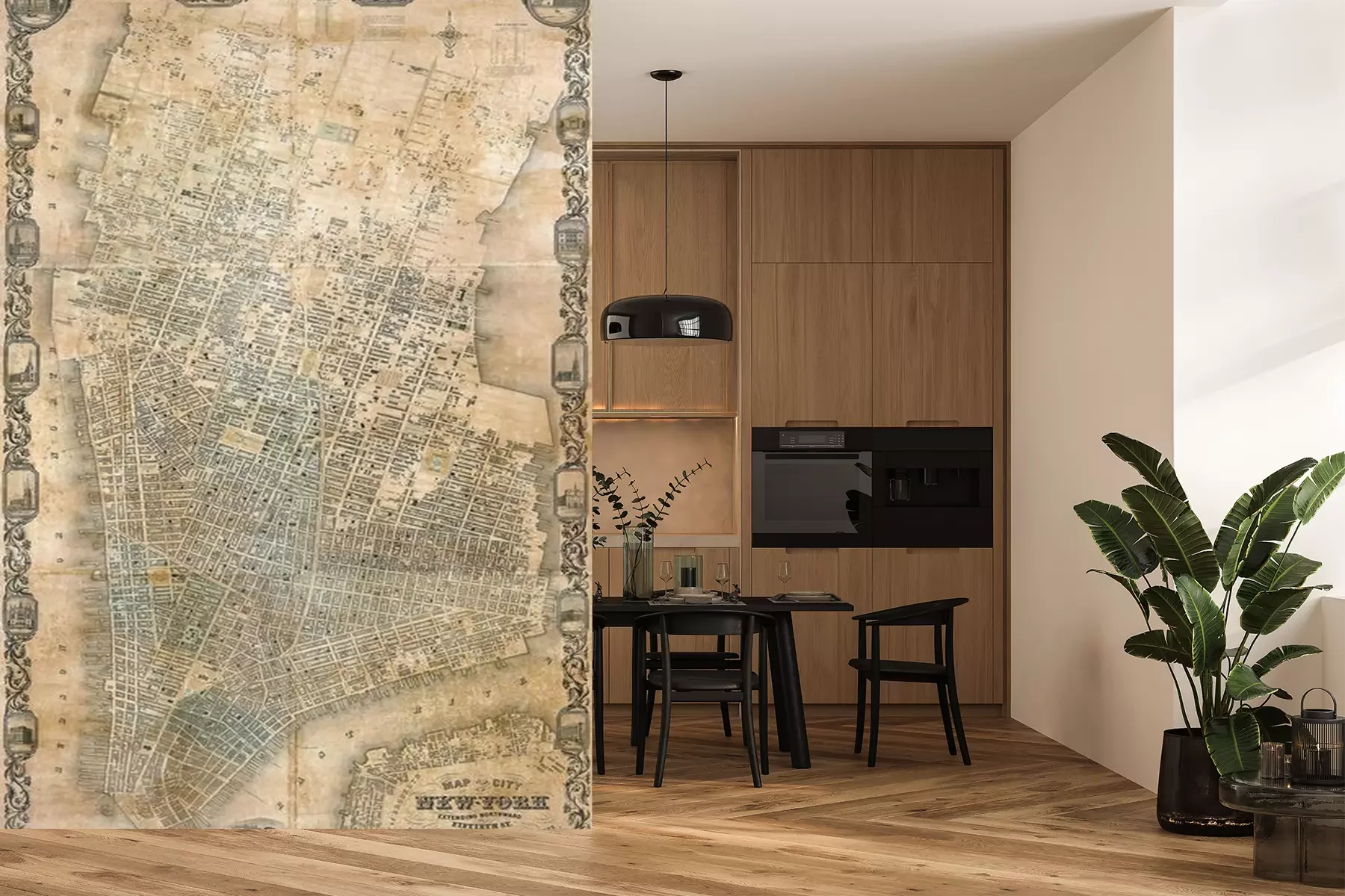 Het materiaal Premium is een glad vinyl op vlies, dat bestand is tegen uitrekken en vervorming. Het is dampdoorlatend – de muren kunnen vrij ademen – waardoor het geschikt is voor gebruik in de keuken en badkamer. Bij vervuiling kan het materiaal worden afgenomen met een vochtige doek. De maximale breedte van één baan bedraagt 95 of 105 cm, afhankelijk van de beschikbaarheid. Montage vindt plaats met de rand-aan-rand methode, wat een esthetisch resultaat zonder zichtbare naden oplevert. Omdat de lijm rechtstreeks op de muur wordt aangebracht, verloopt de installatie van het fotobehang snel en eenvoudig.