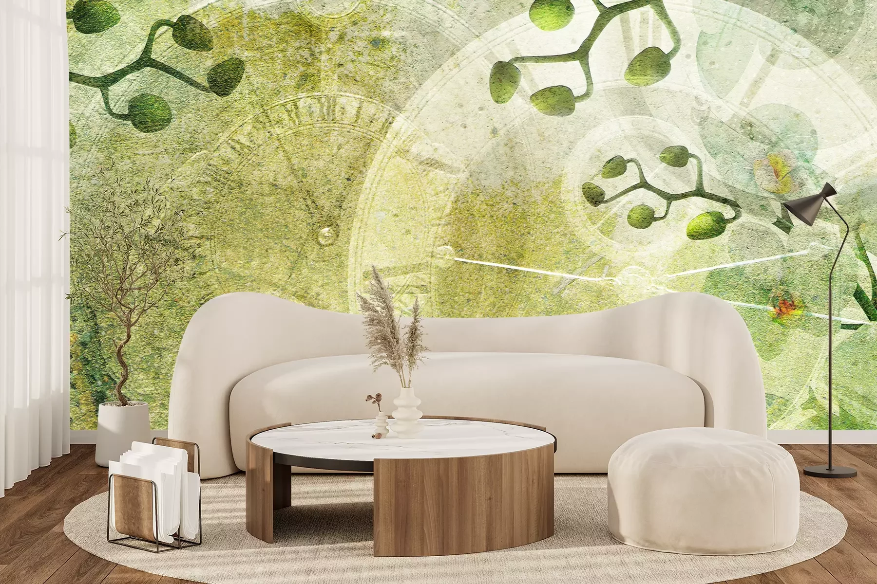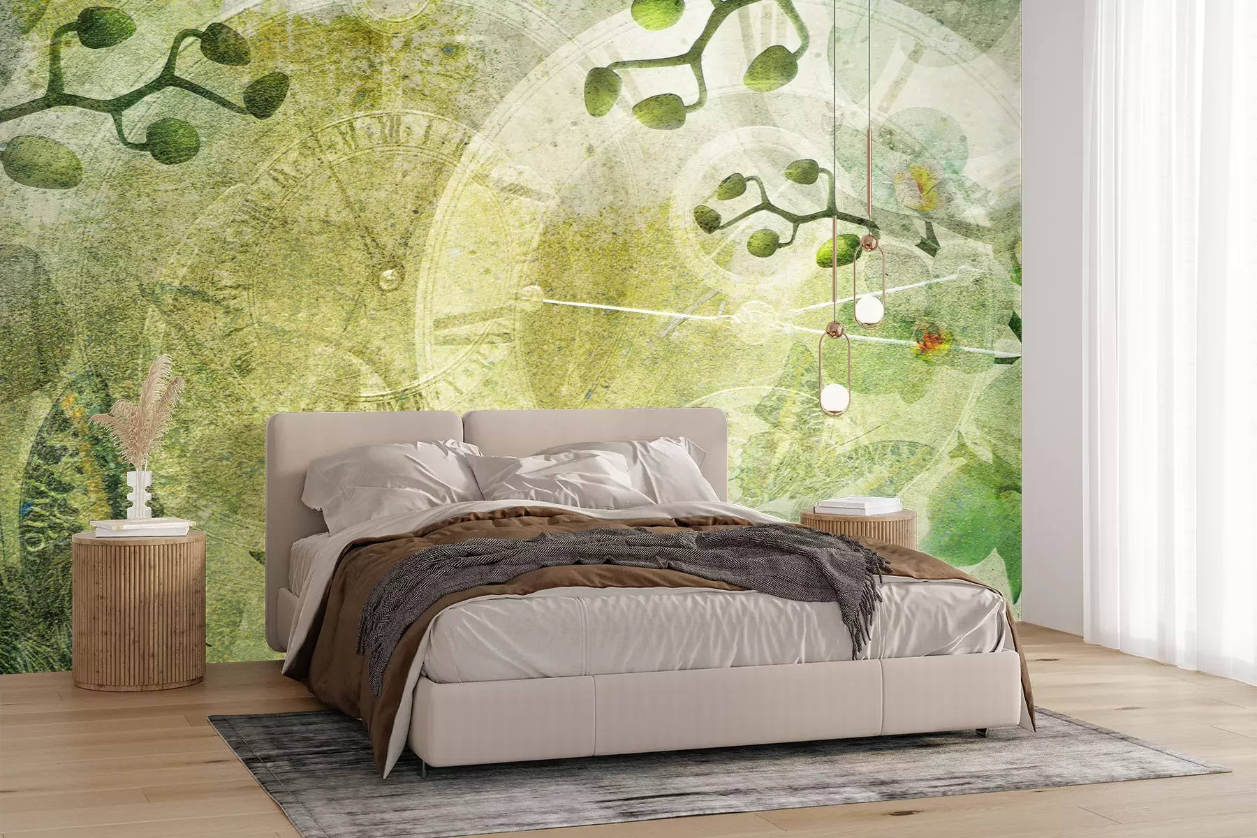 Het materiaal Premium+ is een gestructureerd vinyl op vlies met een gewicht van 255 g/m², dat kleine oneffenheden in de muur effectief camoufleert. De subtiele structuur van fijn zand geeft het oppervlak een exclusieve uitstraling, terwijl de halfmatte afwerking de diepte van de kleuren benadrukt. Het materiaal is dampdoorlatend, waardoor het ook in de keuken en badkamer kan worden gebruikt. De maximale breedte van één baan bedraagt 100 cm – bij grotere afmetingen wordt het fotobehang in meerdere gelijke banen verdeeld. De lijm wordt direct op de muur aangebracht en het behang wordt rand-aan-rand geplakt, wat zorgt voor een esthetisch resultaat zonder zichtbare naden. Het oppervlak kan gemakkelijk worden schoongemaakt door het voorzichtig af te nemen met een vochtige doek.
