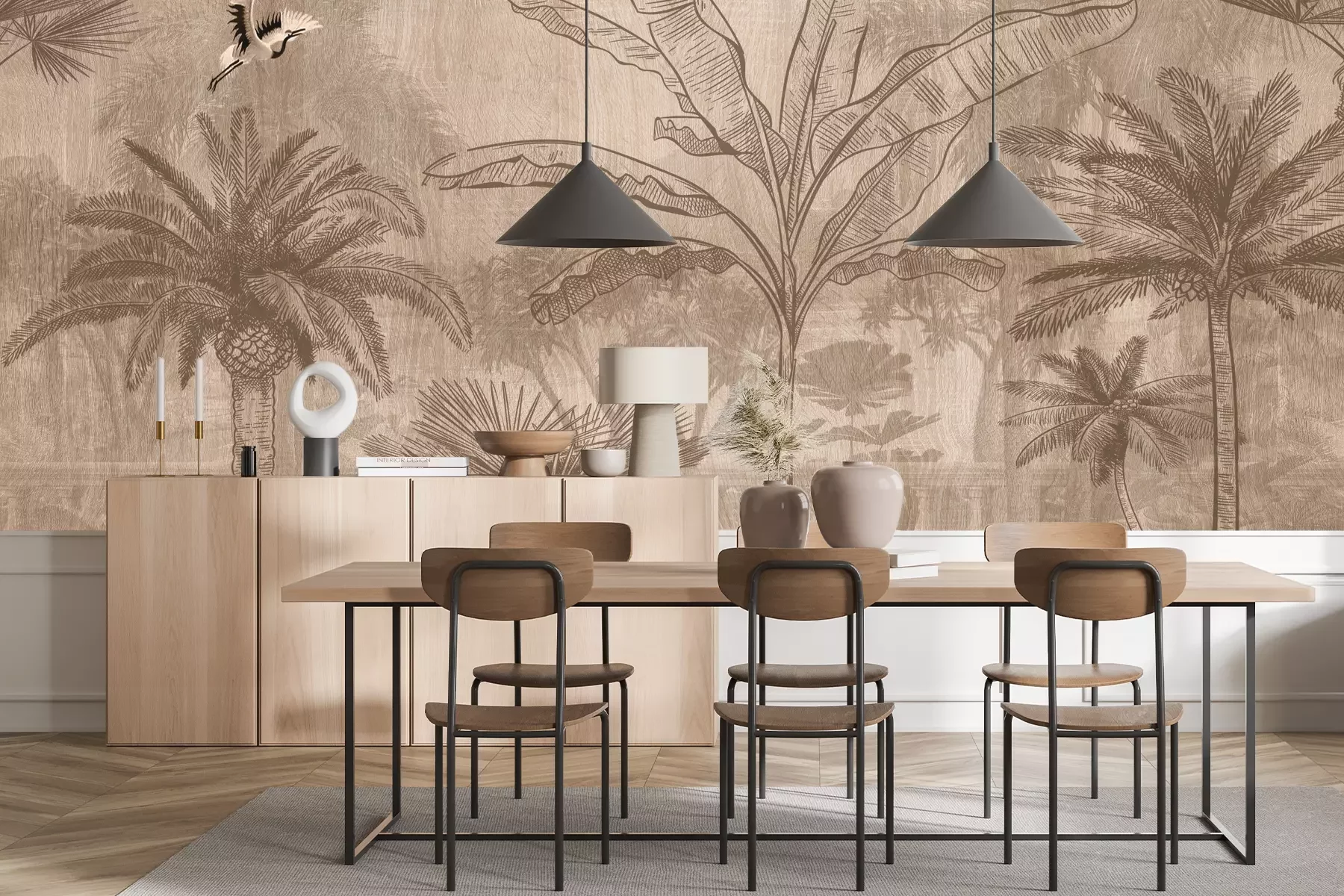 Het materiaal Standard is een hoogwaardig latexmateriaal met een glad, mat oppervlak. Dankzij de HP Latex-printtechnologie zijn de kleuren intens, duurzaam en UV-bestendig, waardoor het patroon jarenlang een onberispelijke uitstraling behoudt. Vervuilde oppervlakken kunnen voorzichtig worden afgeveegd met een droge doek. De maximale breedte van één baan bedraagt 95 cm of 105 cm – afhankelijk van de bestelde fotobehangbreedte. Bij grotere afmetingen wordt het patroon verdeeld over meerdere gelijkmatige banen. Het fotobehang wordt rand-aan-randaangebracht, wat vrijwel onzichtbare naden mogelijk maakt.