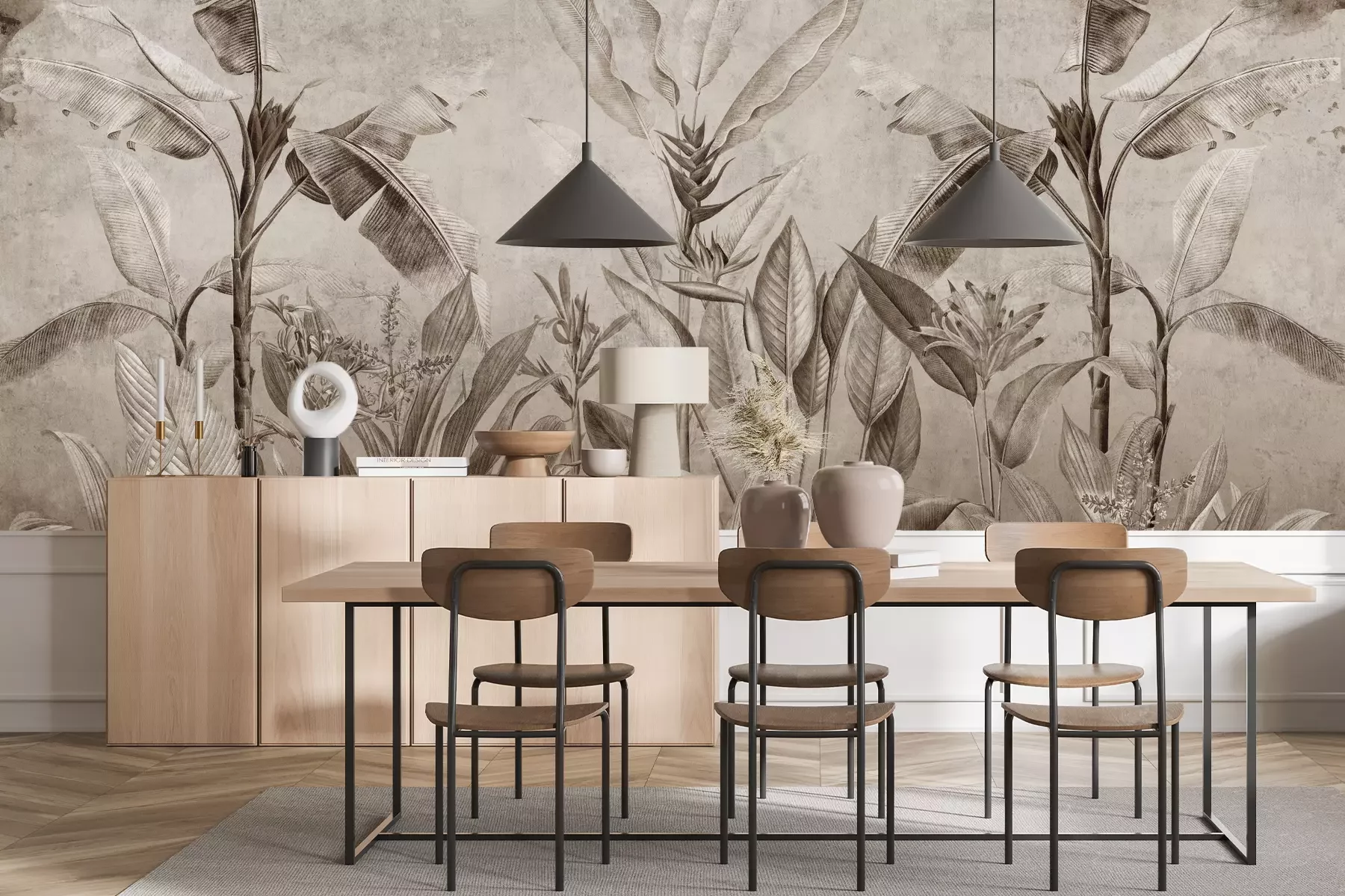 Het materiaal Standard is een hoogwaardig latexmateriaal met een glad, mat oppervlak. Dankzij de HP Latex-printtechnologie zijn de kleuren intens, duurzaam en UV-bestendig, waardoor het patroon jarenlang een onberispelijke uitstraling behoudt. Vervuilde oppervlakken kunnen voorzichtig worden afgeveegd met een droge doek. De maximale breedte van één baan bedraagt 95 cm of 105 cm – afhankelijk van de bestelde fotobehangbreedte. Bij grotere afmetingen wordt het patroon verdeeld over meerdere gelijkmatige banen. Het fotobehang wordt rand-aan-randaangebracht, wat vrijwel onzichtbare naden mogelijk maakt.