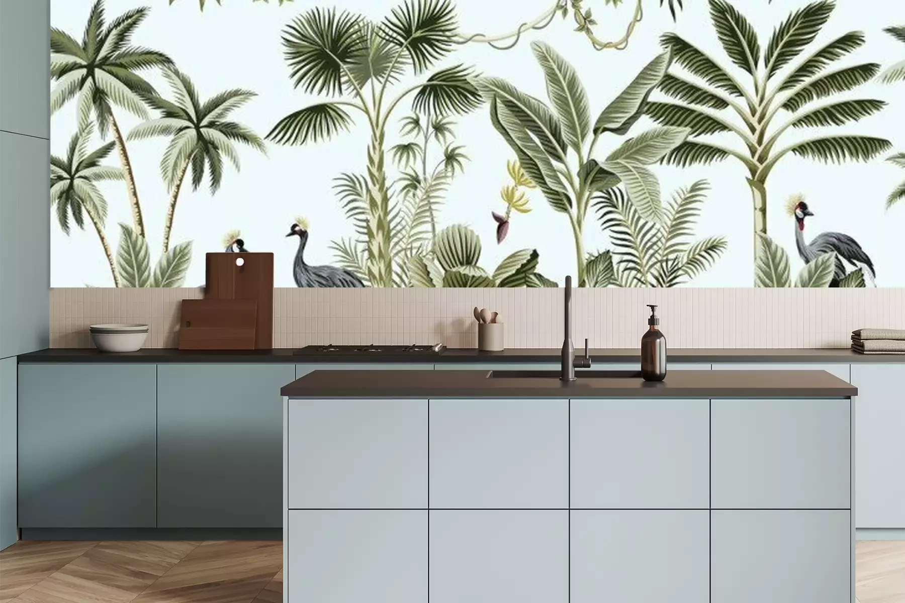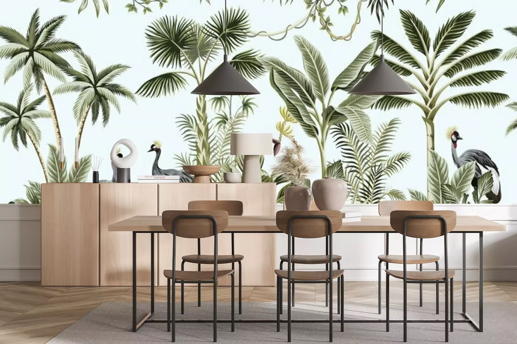 Exotische bomen in grijsFotobehang