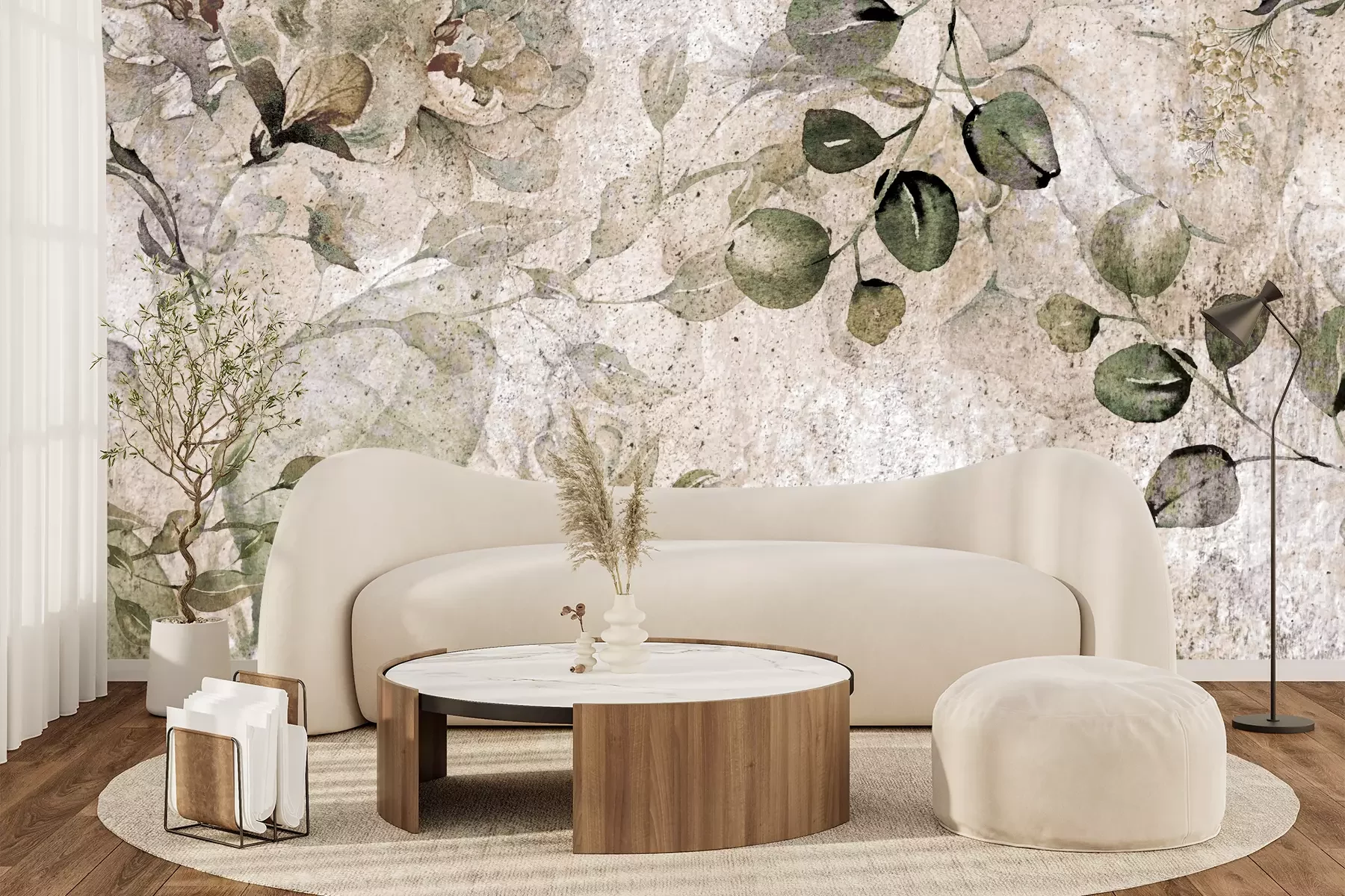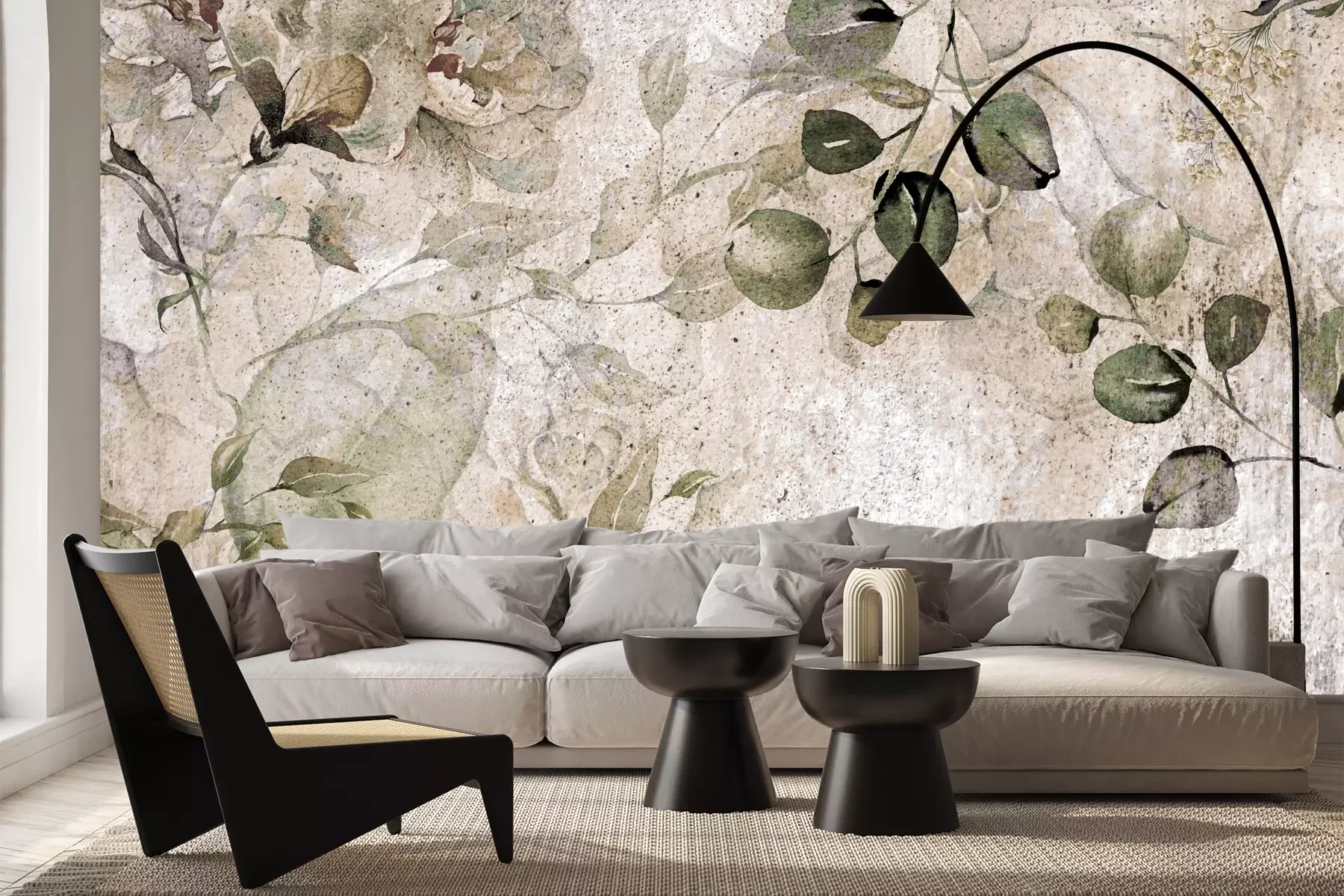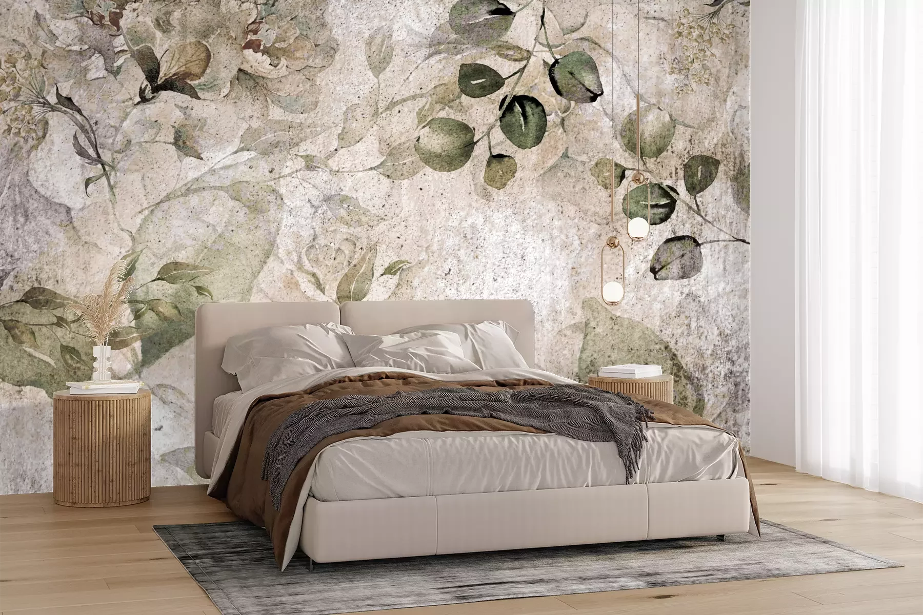 Het materiaal Premium+ is een gestructureerd vinyl op vlies met een gewicht van 255 g/m², dat kleine oneffenheden in de muur effectief camoufleert. De subtiele structuur van fijn zand geeft het oppervlak een exclusieve uitstraling, terwijl de halfmatte afwerking de diepte van de kleuren benadrukt. Het materiaal is dampdoorlatend, waardoor het ook in de keuken en badkamer kan worden gebruikt. De maximale breedte van één baan bedraagt 100 cm – bij grotere afmetingen wordt het fotobehang in meerdere gelijke banen verdeeld. De lijm wordt direct op de muur aangebracht en het behang wordt rand-aan-rand geplakt, wat zorgt voor een esthetisch resultaat zonder zichtbare naden. Het oppervlak kan gemakkelijk worden schoongemaakt door het voorzichtig af te nemen met een vochtige doek.