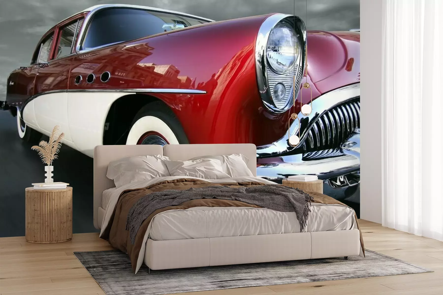 Het materiaal Premium+ is een gestructureerd vinyl op vlies met een gewicht van 255 g/m², dat kleine oneffenheden in de muur effectief camoufleert. De subtiele structuur van fijn zand geeft het oppervlak een exclusieve uitstraling, terwijl de halfmatte afwerking de diepte van de kleuren benadrukt. Het materiaal is dampdoorlatend, waardoor het ook in de keuken en badkamer kan worden gebruikt. De maximale breedte van één baan bedraagt 100 cm – bij grotere afmetingen wordt het fotobehang in meerdere gelijke banen verdeeld. De lijm wordt direct op de muur aangebracht en het behang wordt rand-aan-rand geplakt, wat zorgt voor een esthetisch resultaat zonder zichtbare naden. Het oppervlak kan gemakkelijk worden schoongemaakt door het voorzichtig af te nemen met een vochtige doek.