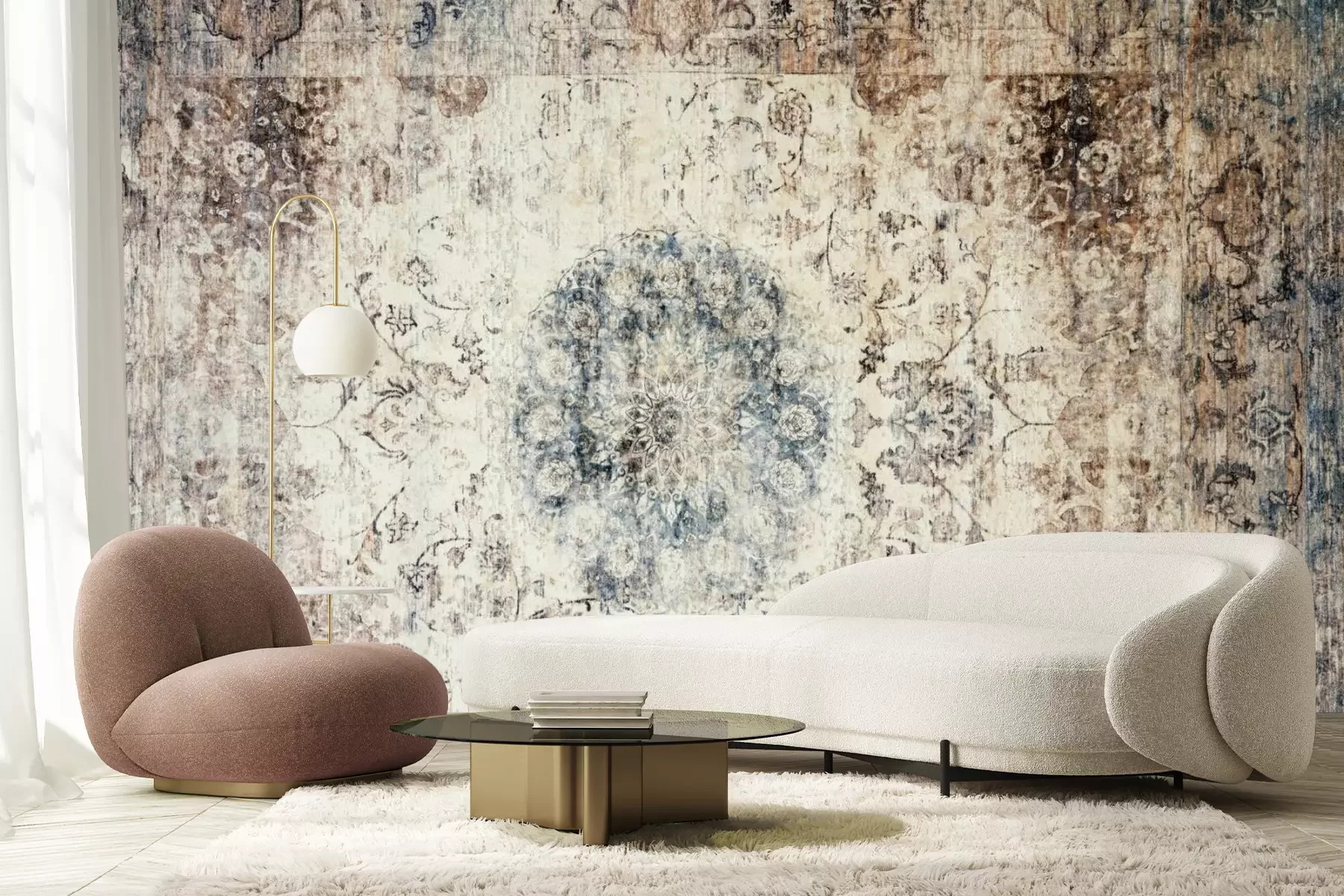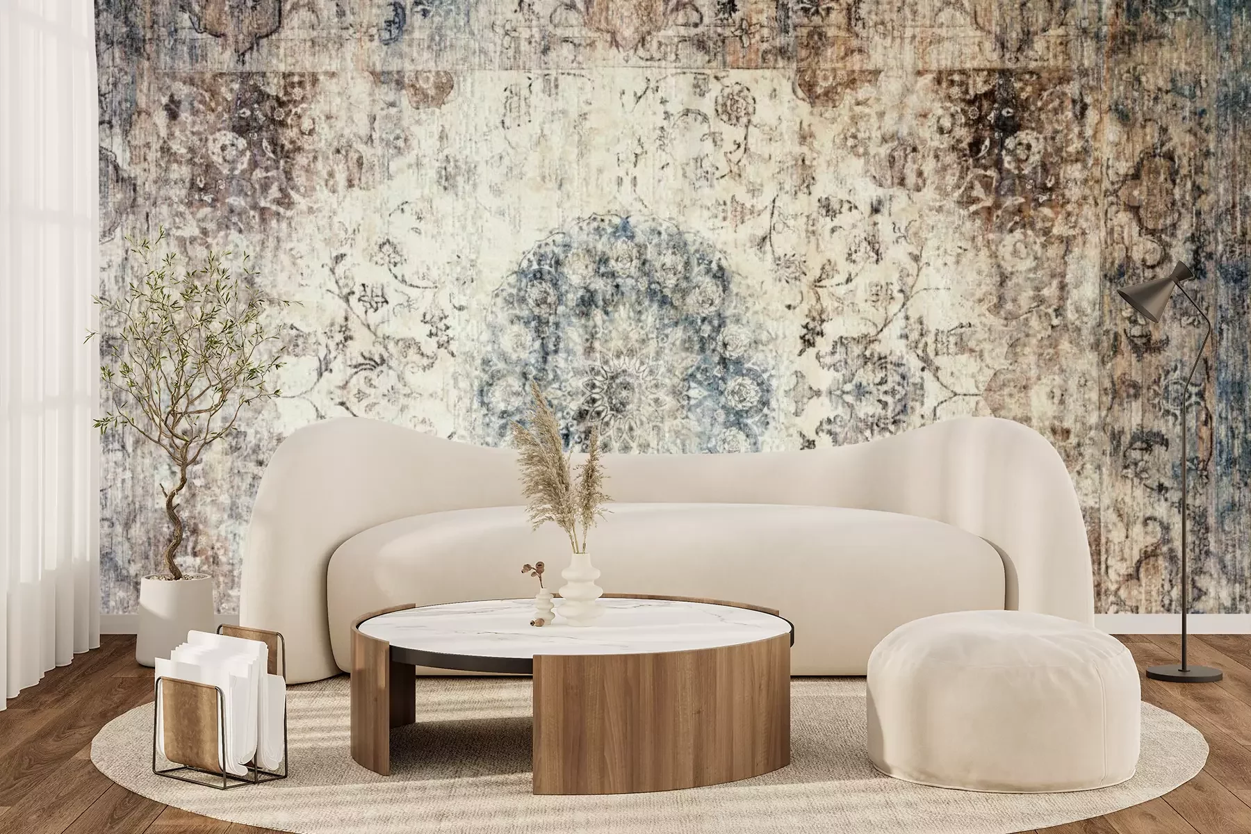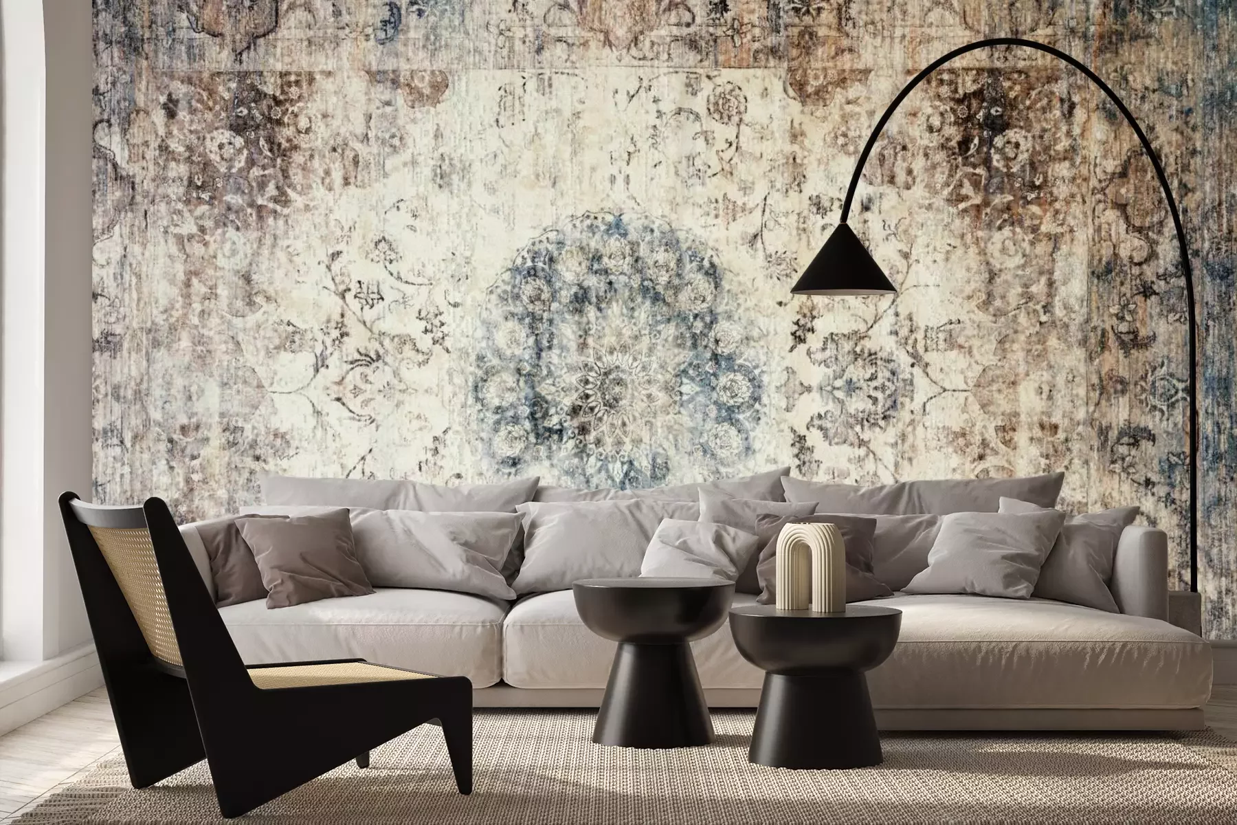 Het materiaal Standard is een hoogwaardig latexmateriaal met een glad, mat oppervlak. Dankzij de HP Latex-printtechnologie zijn de kleuren intens, duurzaam en UV-bestendig, waardoor het patroon jarenlang een onberispelijke uitstraling behoudt. Vervuilde oppervlakken kunnen voorzichtig worden afgeveegd met een droge doek. De maximale breedte van één baan bedraagt 95 cm of 105 cm – afhankelijk van de bestelde fotobehangbreedte. Bij grotere afmetingen wordt het patroon verdeeld over meerdere gelijkmatige banen. Het fotobehang wordt rand-aan-randaangebracht, wat vrijwel onzichtbare naden mogelijk maakt.