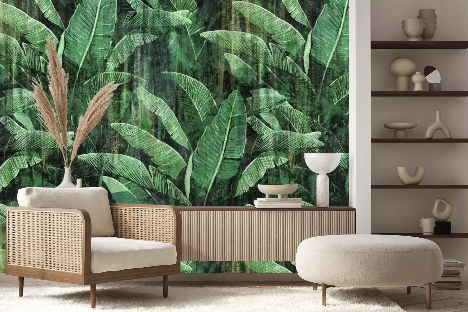 Het materiaal Premium+ is een gestructureerd vinyl op vlies met een gewicht van 255 g/m², dat kleine oneffenheden in de muur effectief camoufleert. De subtiele structuur van fijn zand geeft het oppervlak een exclusieve uitstraling, terwijl de halfmatte afwerking de diepte van de kleuren benadrukt. Het materiaal is dampdoorlatend, waardoor het ook in de keuken en badkamer kan worden gebruikt. De maximale breedte van één baan bedraagt 100 cm – bij grotere afmetingen wordt het fotobehang in meerdere gelijke banen verdeeld. De lijm wordt direct op de muur aangebracht en het behang wordt rand-aan-rand geplakt, wat zorgt voor een esthetisch resultaat zonder zichtbare naden. Het oppervlak kan gemakkelijk worden schoongemaakt door het voorzichtig af te nemen met een vochtige doek.