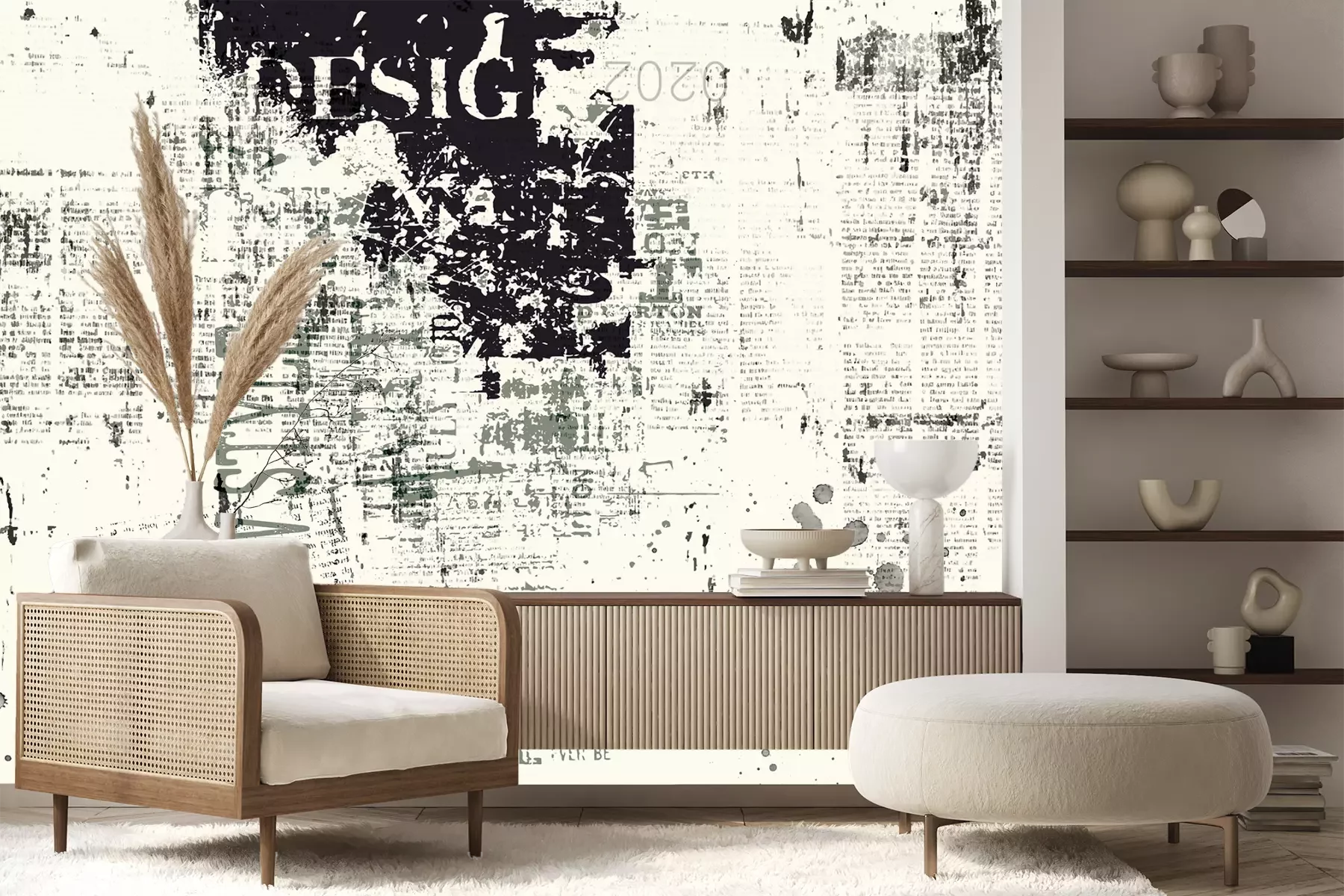 Het materiaal Premium+ is een gestructureerd vinyl op vlies met een gewicht van 255 g/m², dat kleine oneffenheden in de muur effectief camoufleert. De subtiele structuur van fijn zand geeft het oppervlak een exclusieve uitstraling, terwijl de halfmatte afwerking de diepte van de kleuren benadrukt. Het materiaal is dampdoorlatend, waardoor het ook in de keuken en badkamer kan worden gebruikt. De maximale breedte van één baan bedraagt 100 cm – bij grotere afmetingen wordt het fotobehang in meerdere gelijke banen verdeeld. De lijm wordt direct op de muur aangebracht en het behang wordt rand-aan-rand geplakt, wat zorgt voor een esthetisch resultaat zonder zichtbare naden. Het oppervlak kan gemakkelijk worden schoongemaakt door het voorzichtig af te nemen met een vochtige doek.