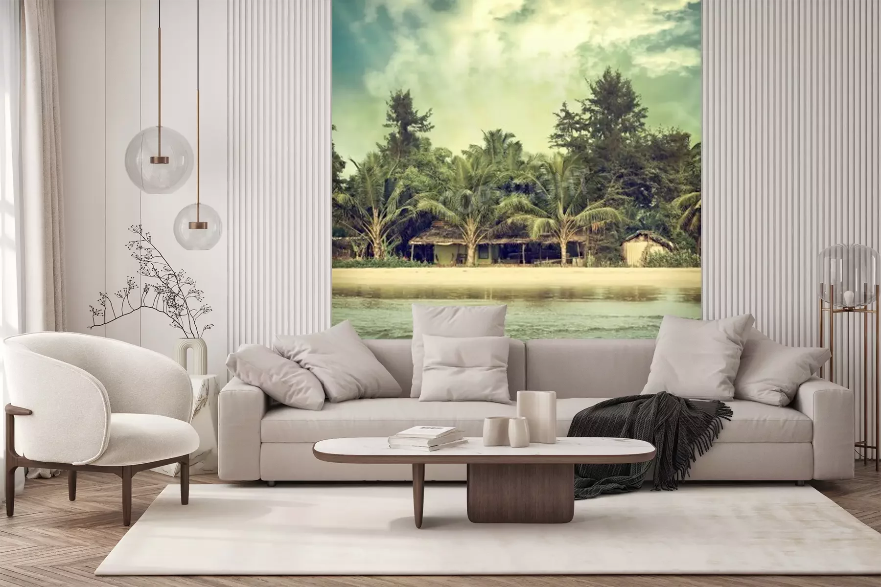 Fotobehang Vintage zeezicht op het strand