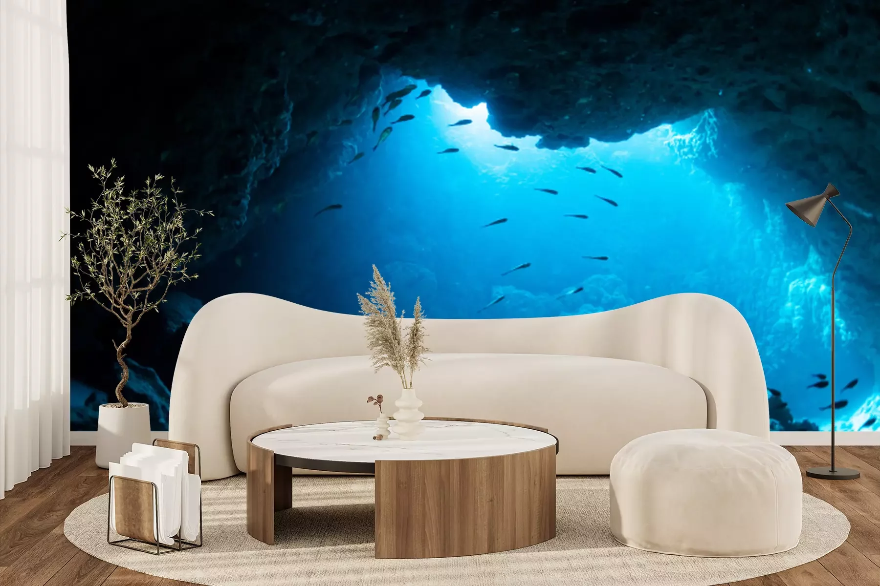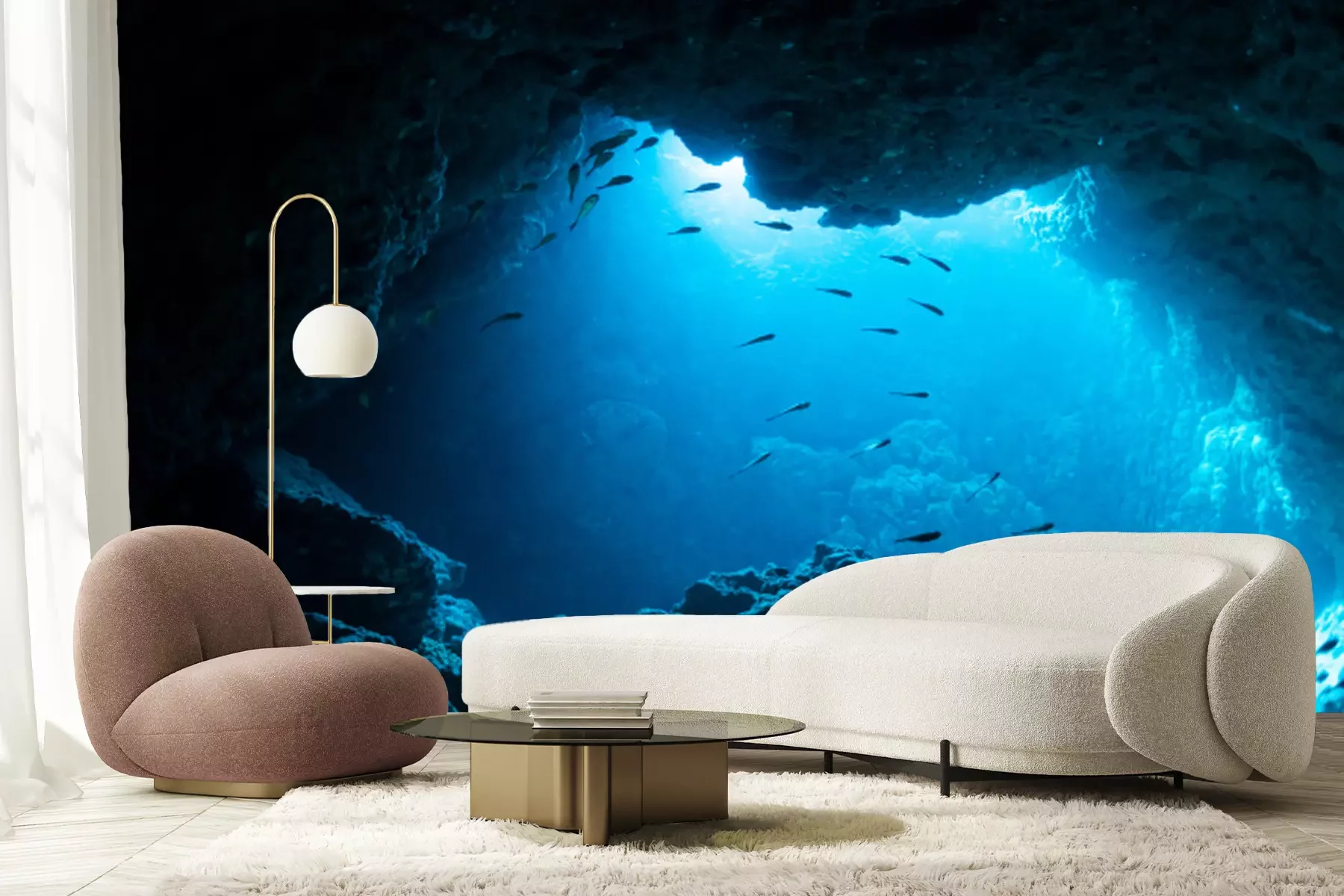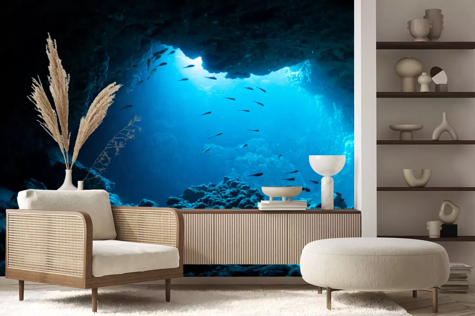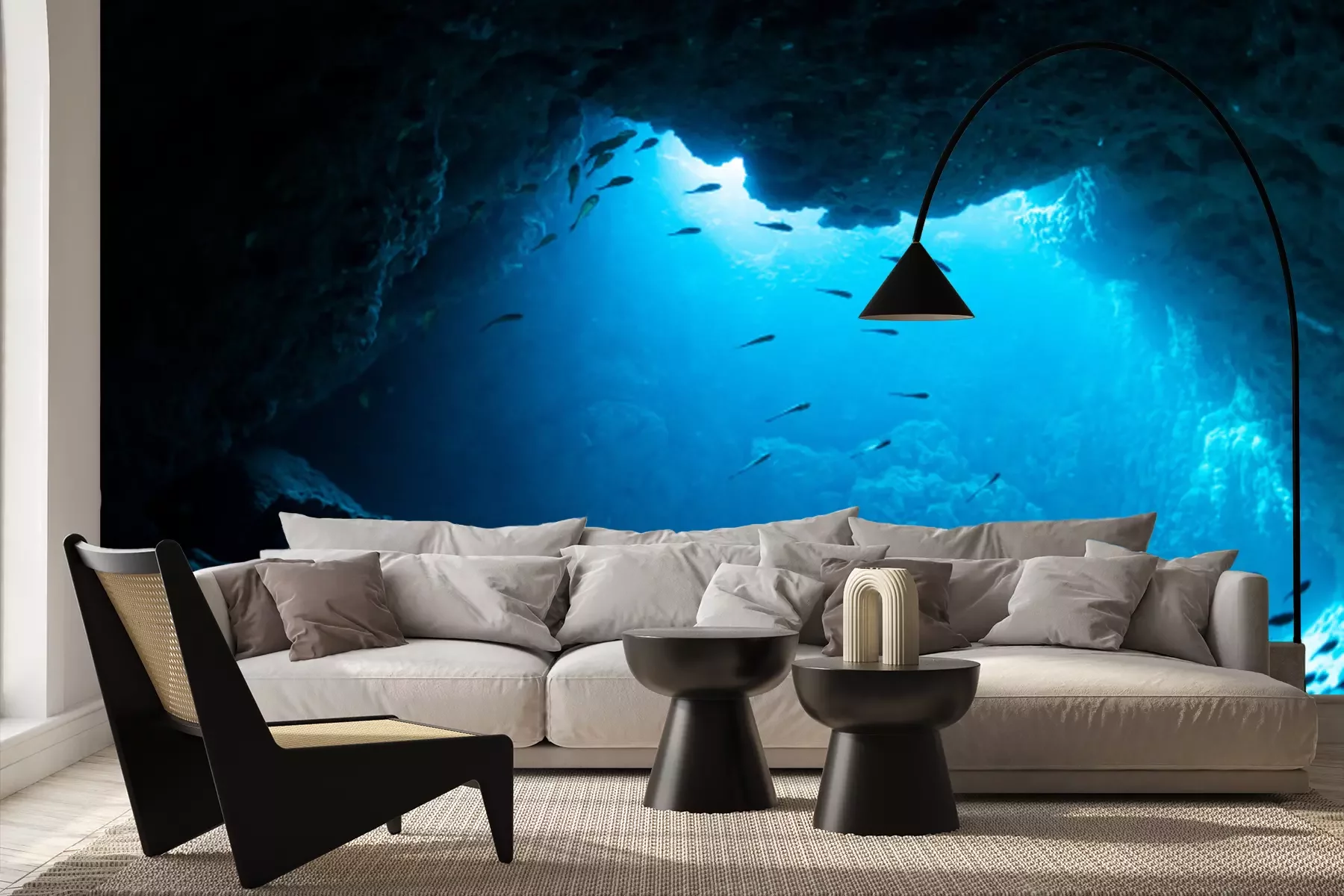 Fotobehang Vis die een donkere grot binnengaat