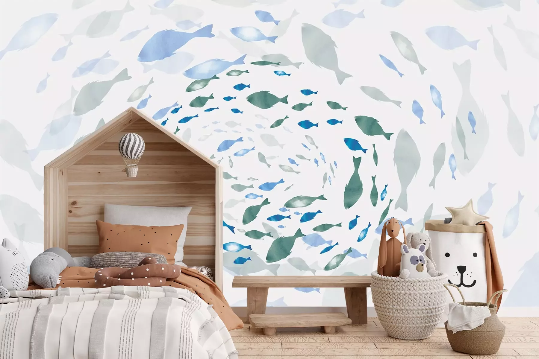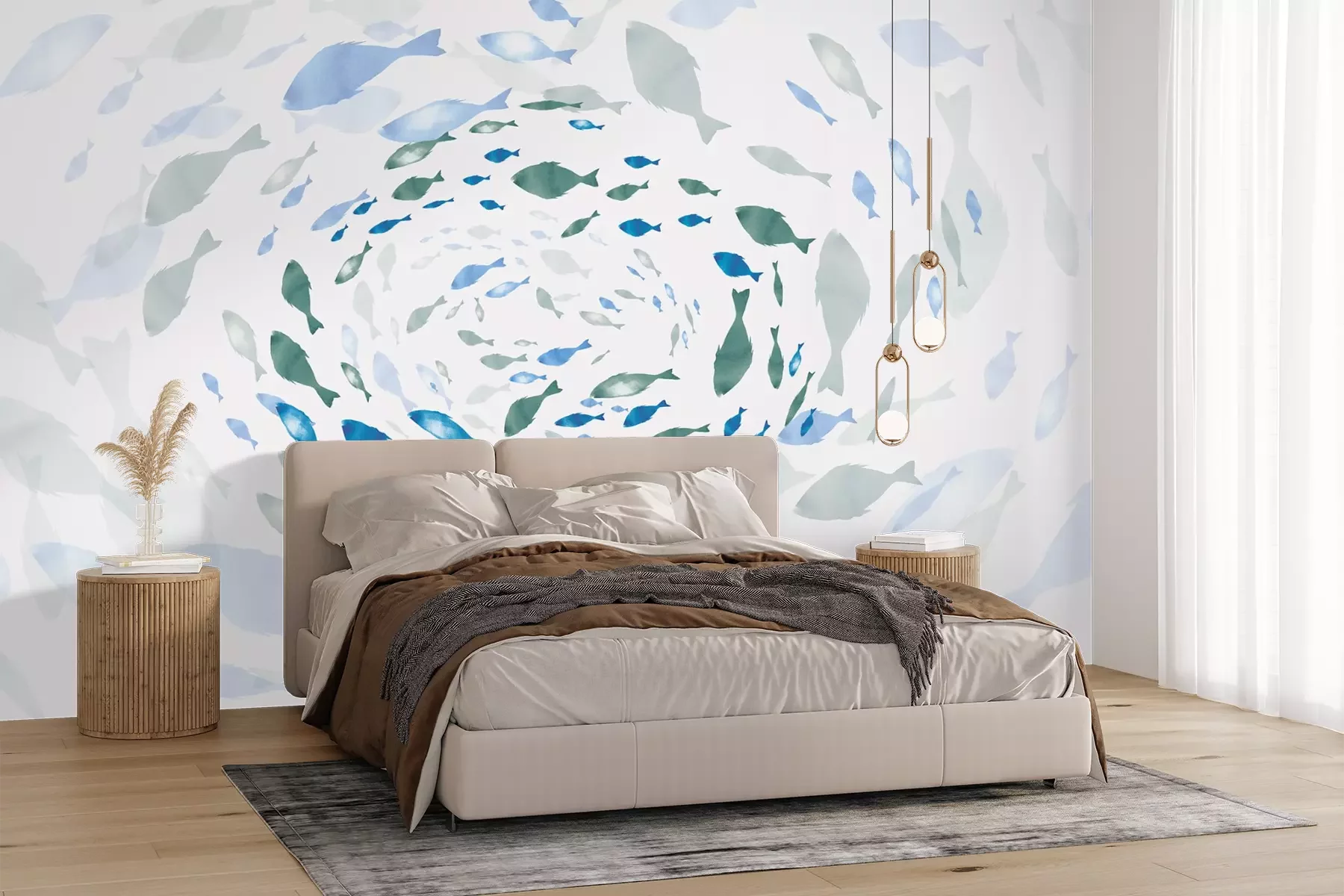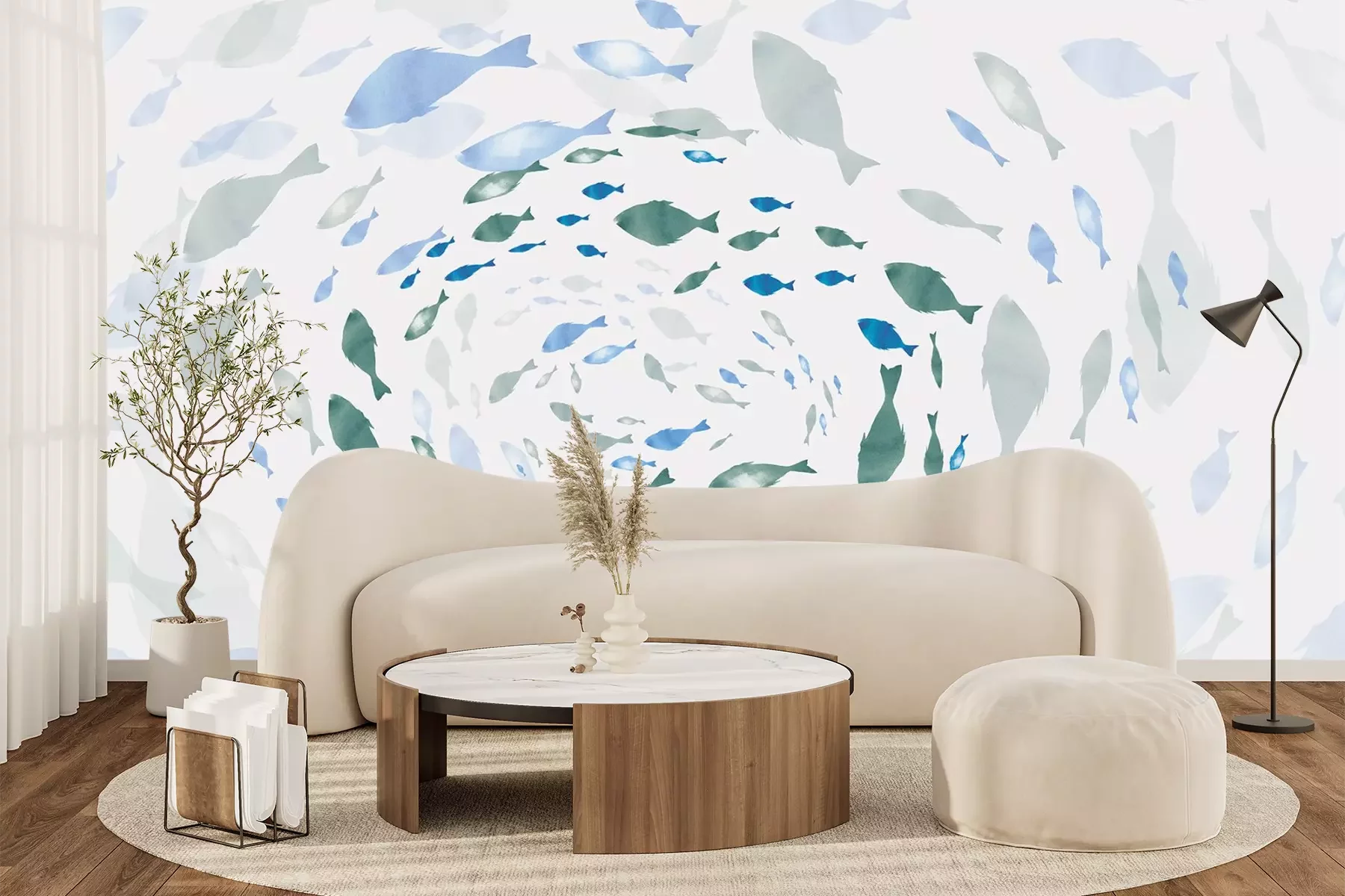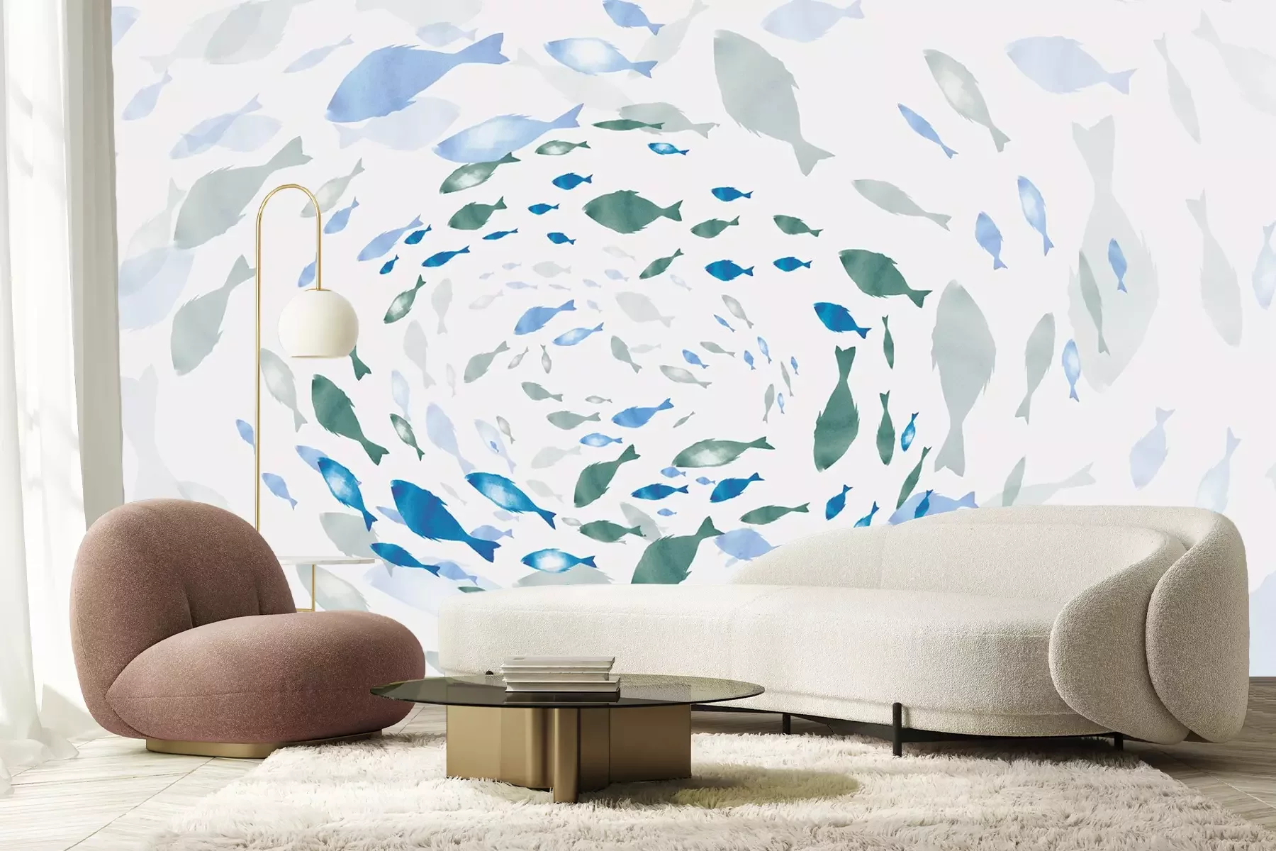 Vis in een draaikolk abstract aquarelpatroon moderne grafische