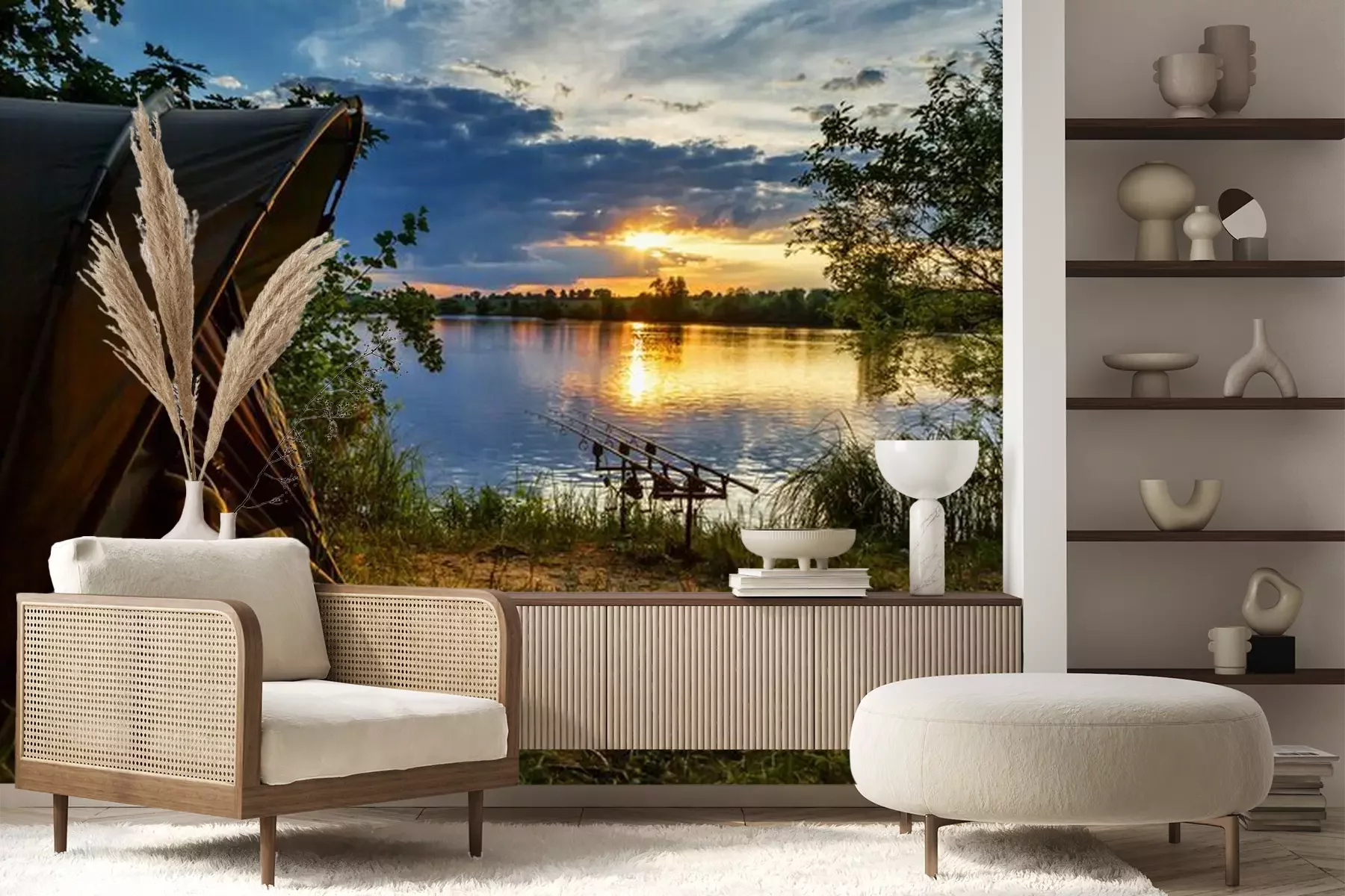 Het materiaal Premium+ is een gestructureerd vinyl op vlies met een gewicht van 255 g/m², dat kleine oneffenheden in de muur effectief camoufleert. De subtiele structuur van fijn zand geeft het oppervlak een exclusieve uitstraling, terwijl de halfmatte afwerking de diepte van de kleuren benadrukt. Het materiaal is dampdoorlatend, waardoor het ook in de keuken en badkamer kan worden gebruikt. De maximale breedte van één baan bedraagt 100 cm – bij grotere afmetingen wordt het fotobehang in meerdere gelijke banen verdeeld. De lijm wordt direct op de muur aangebracht en het behang wordt rand-aan-rand geplakt, wat zorgt voor een esthetisch resultaat zonder zichtbare naden. Het oppervlak kan gemakkelijk worden schoongemaakt door het voorzichtig af te nemen met een vochtige doek.