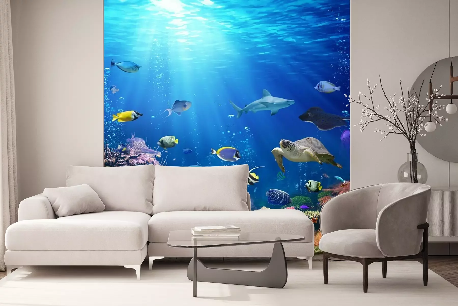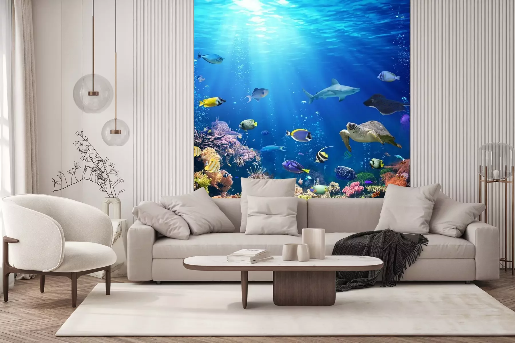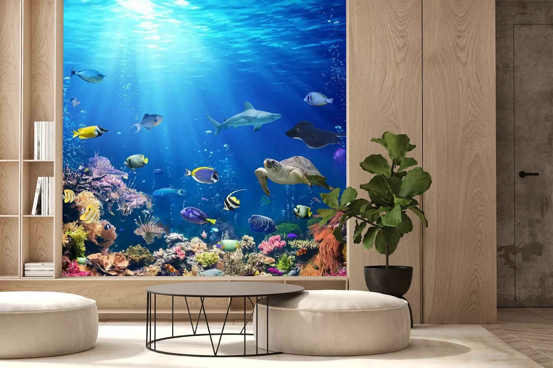 Onderwaterscène met kleurrijk koraalrifFotobehang