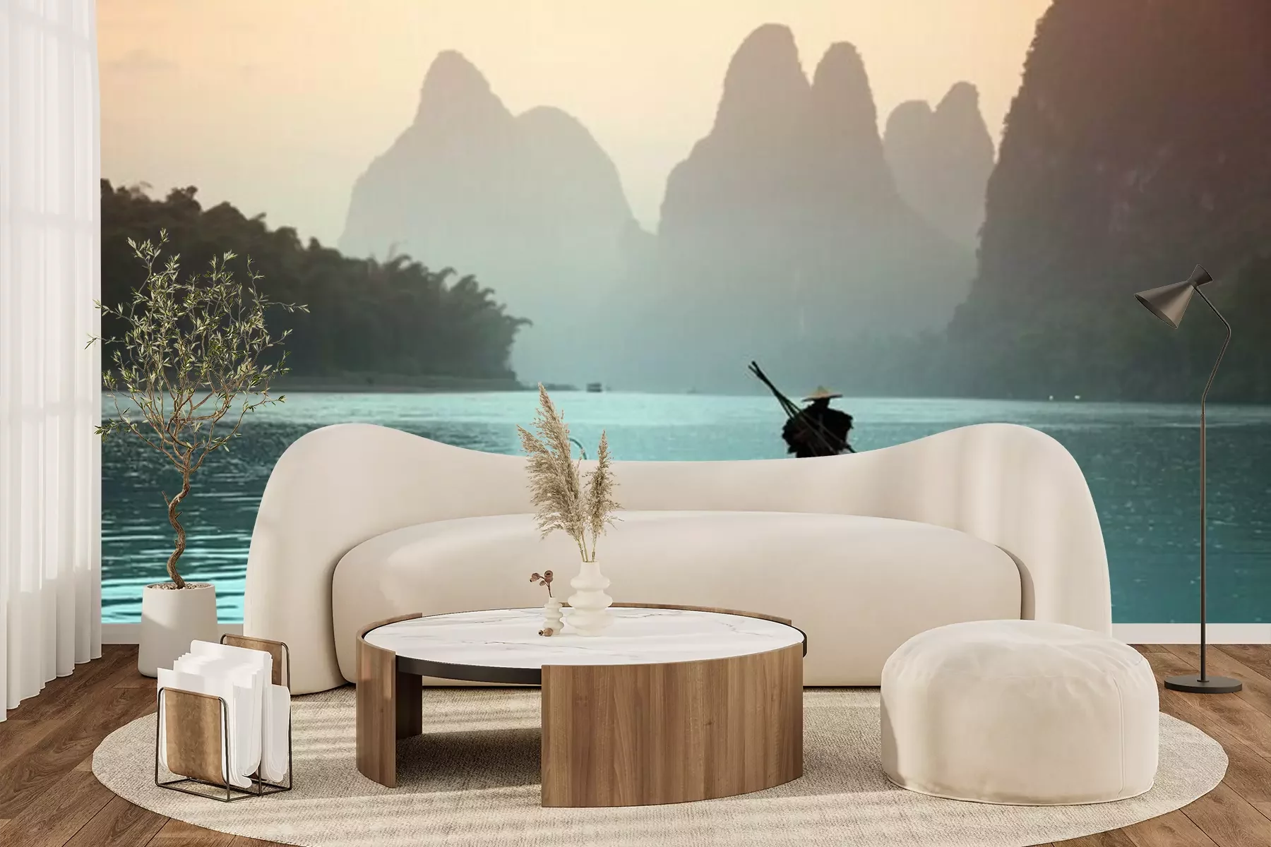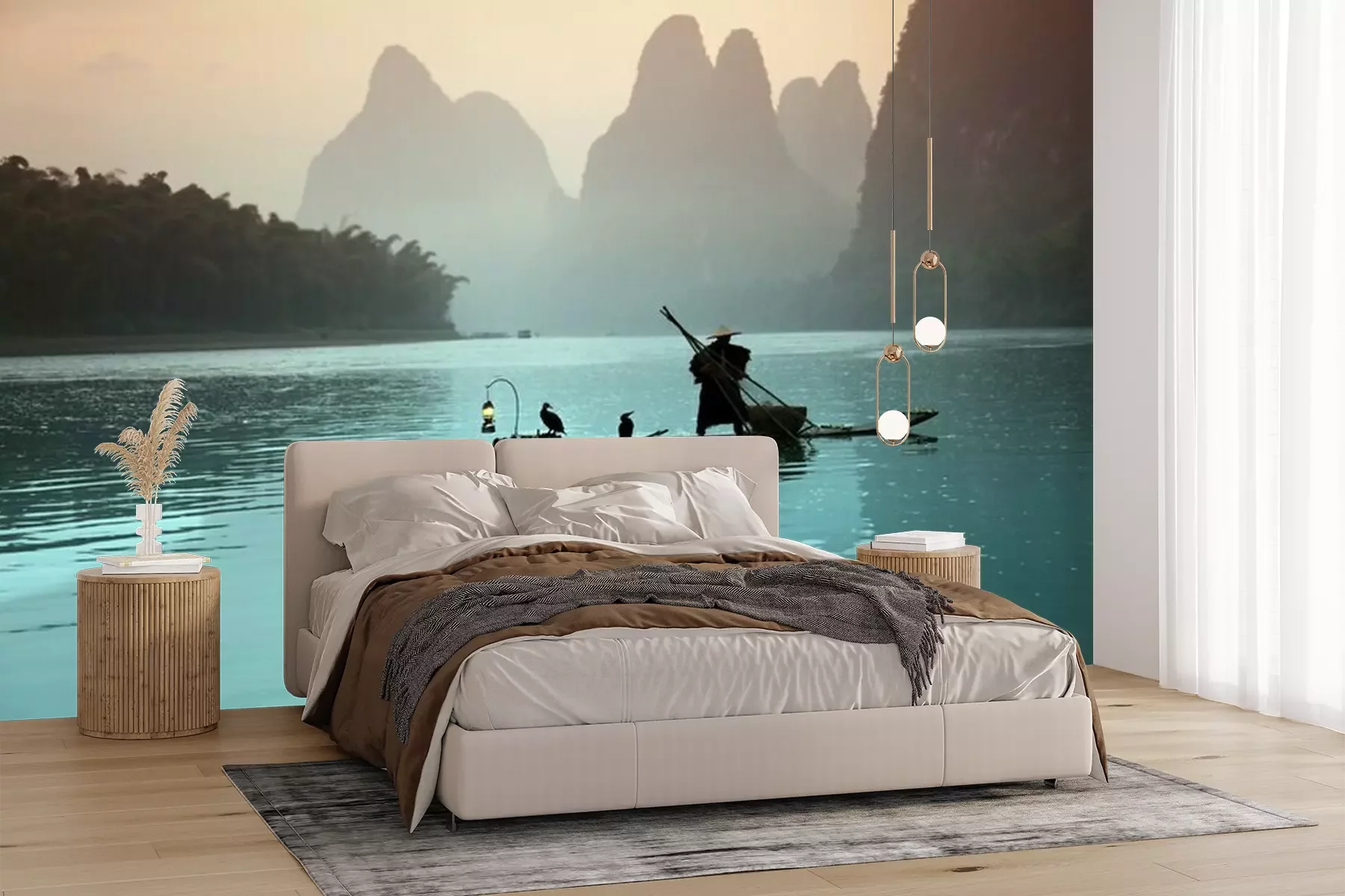 Het materiaal Premium+ is een gestructureerd vinyl op vlies met een gewicht van 255 g/m², dat kleine oneffenheden in de muur effectief camoufleert. De subtiele structuur van fijn zand geeft het oppervlak een exclusieve uitstraling, terwijl de halfmatte afwerking de diepte van de kleuren benadrukt. Het materiaal is dampdoorlatend, waardoor het ook in de keuken en badkamer kan worden gebruikt. De maximale breedte van één baan bedraagt 100 cm – bij grotere afmetingen wordt het fotobehang in meerdere gelijke banen verdeeld. De lijm wordt direct op de muur aangebracht en het behang wordt rand-aan-rand geplakt, wat zorgt voor een esthetisch resultaat zonder zichtbare naden. Het oppervlak kan gemakkelijk worden schoongemaakt door het voorzichtig af te nemen met een vochtige doek.