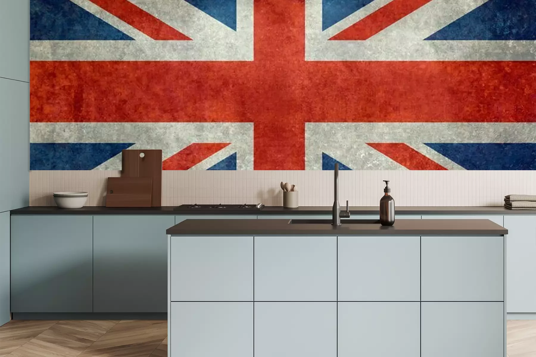 Het materiaal Premium is een glad vinyl op vlies, dat bestand is tegen uitrekken en vervorming. Het is dampdoorlatend – de muren kunnen vrij ademen – waardoor het geschikt is voor gebruik in de keuken en badkamer. Bij vervuiling kan het materiaal worden afgenomen met een vochtige doek. De maximale breedte van één baan bedraagt 95 of 105 cm, afhankelijk van de beschikbaarheid. Montage vindt plaats met de rand-aan-rand methode, wat een esthetisch resultaat zonder zichtbare naden oplevert. Omdat de lijm rechtstreeks op de muur wordt aangebracht, verloopt de installatie van het fotobehang snel en eenvoudig.