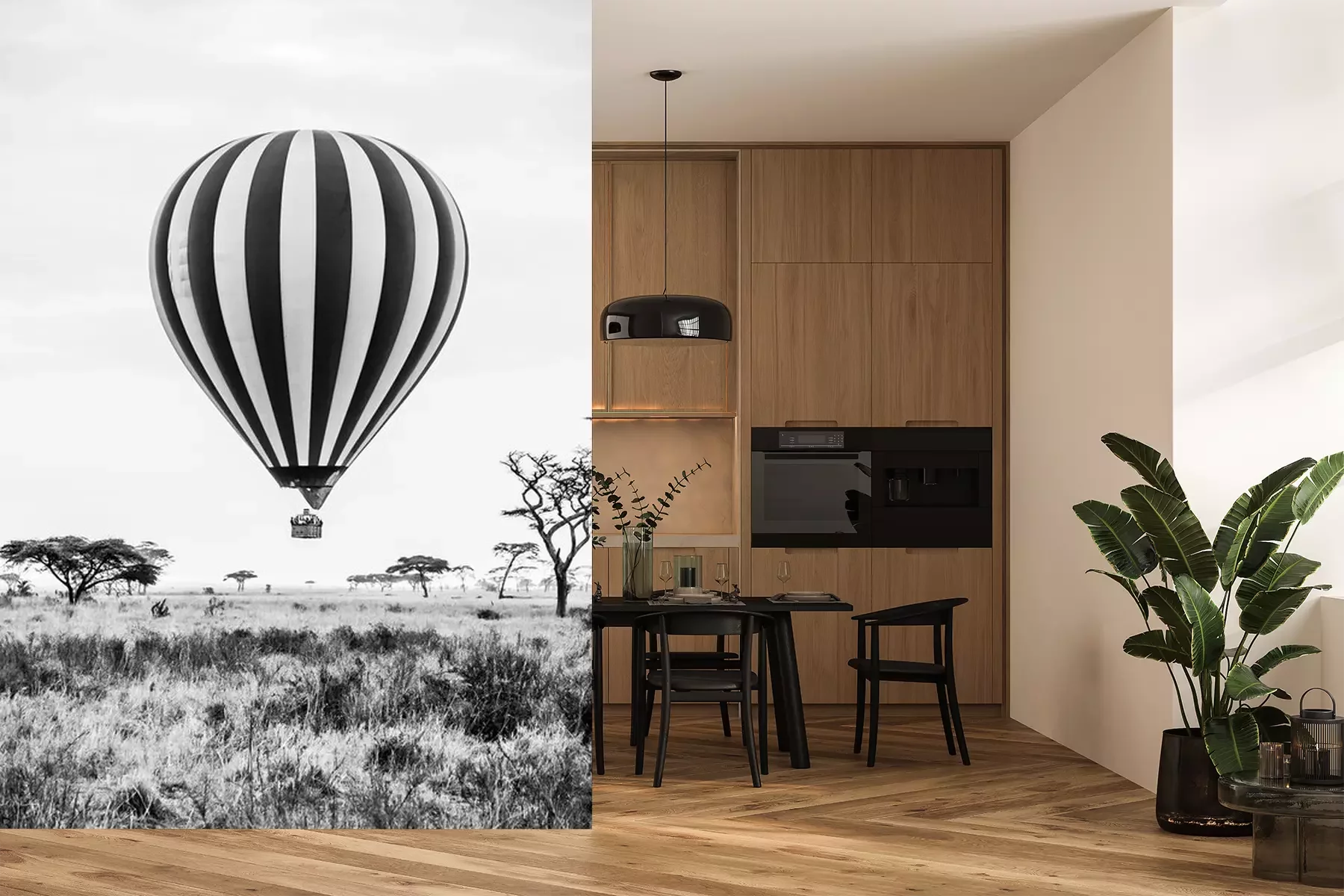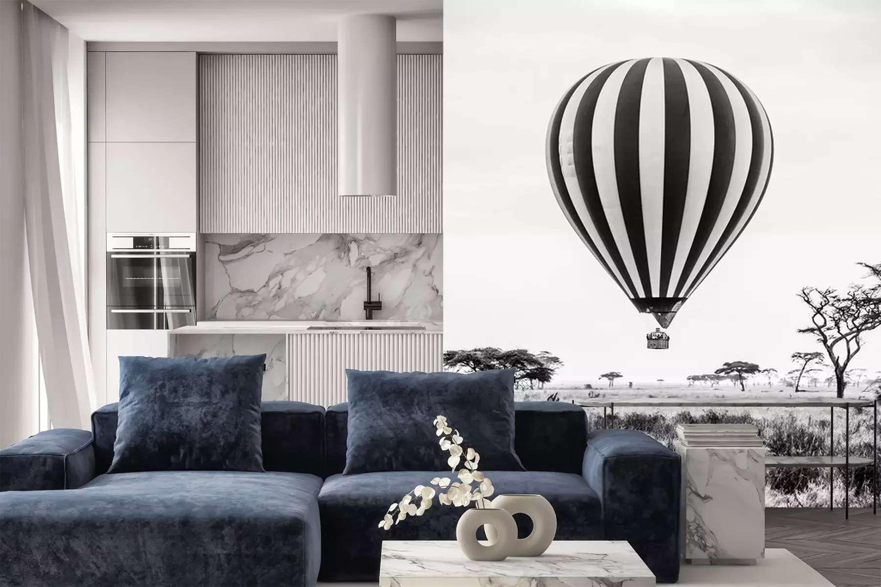 Fotobehang Vliegende ballon over de Afrikaanse savanne