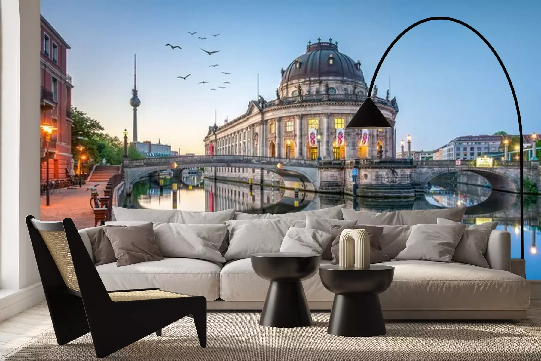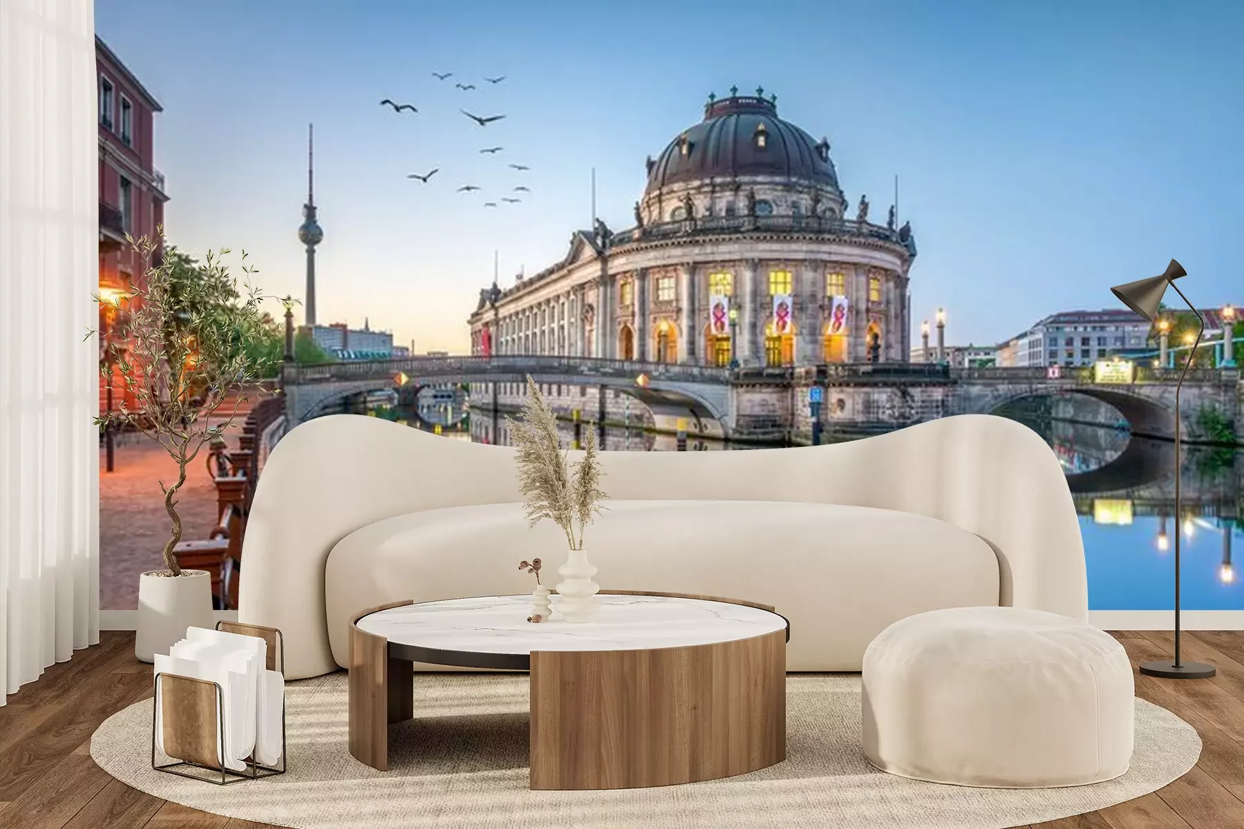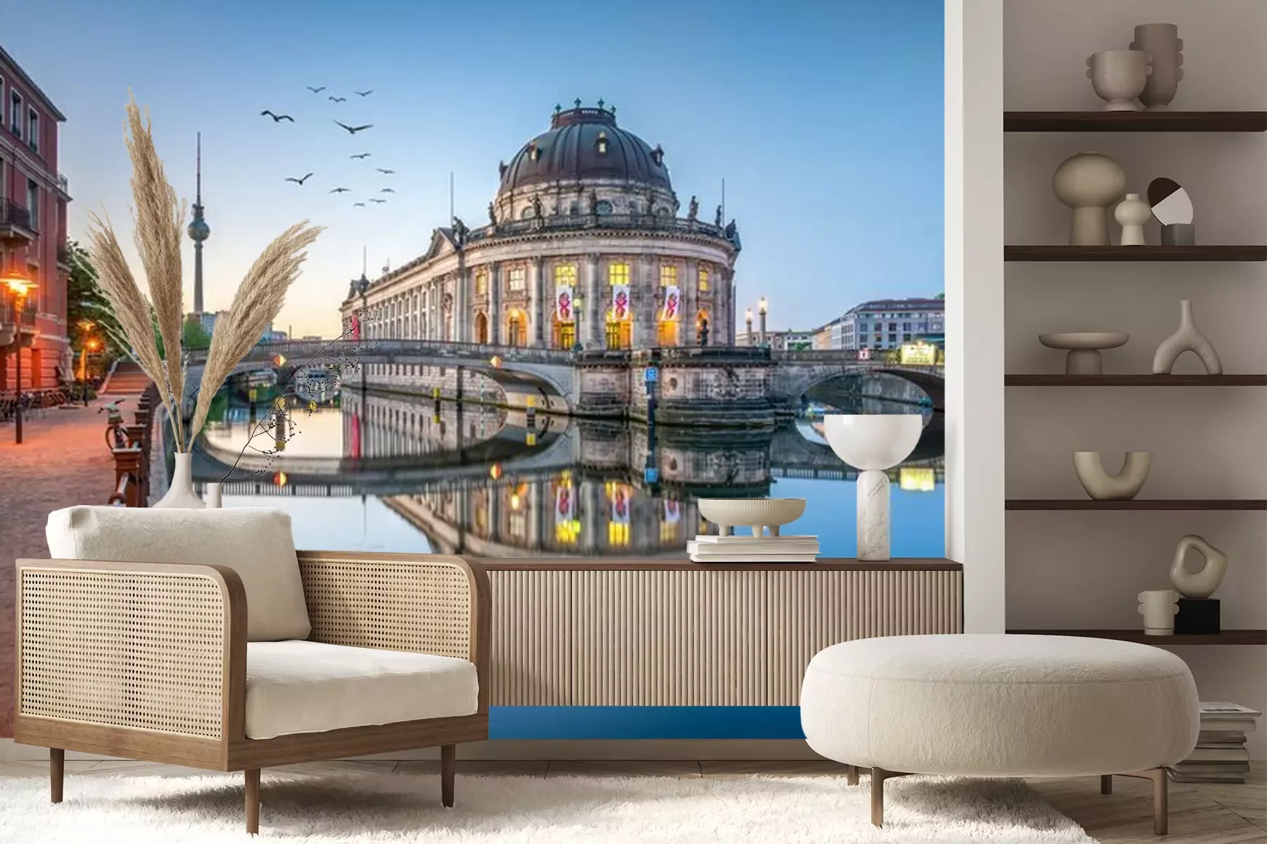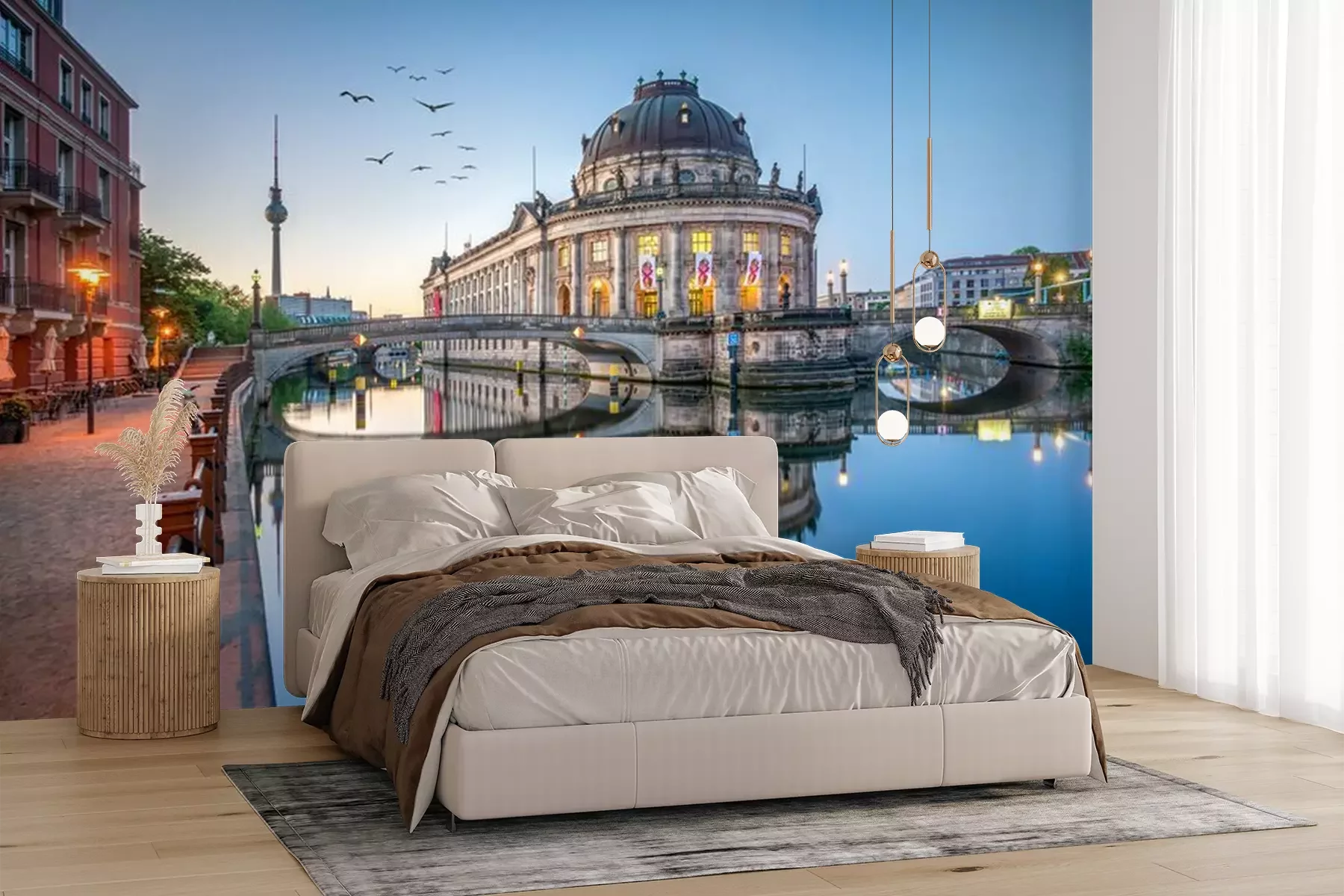 Fotobehang Vliegende vogels op de achtergrond van het Museuminsel