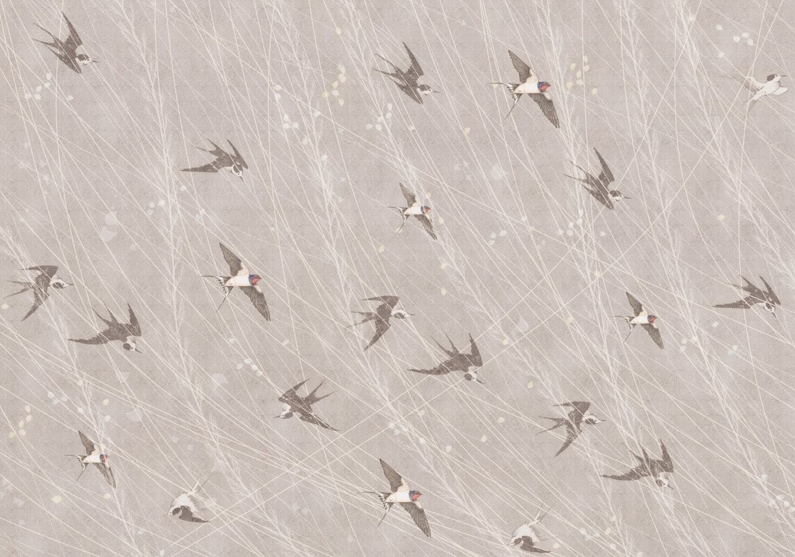 Fotobehang: Vliegende vogels op een beige achtergrond