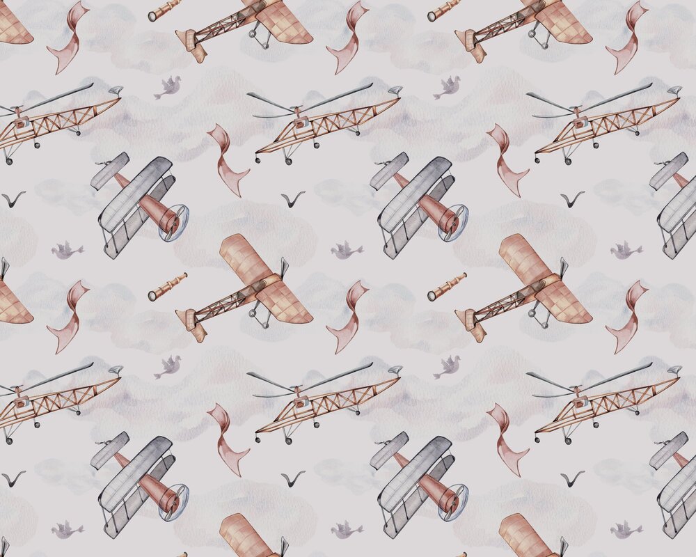 Fotobehang: Vliegtuigen tussen de wolken in een aquarellucht