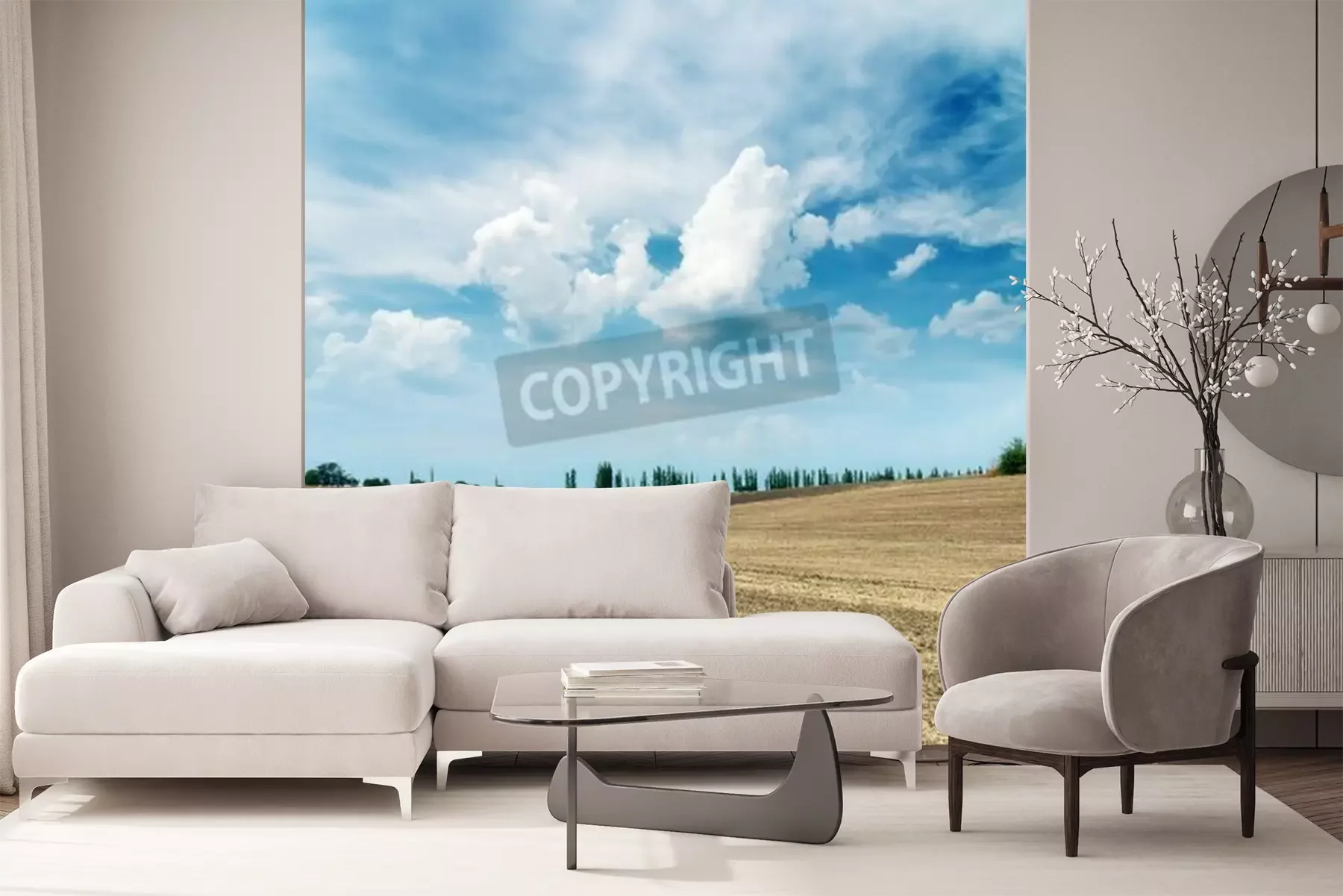 Fotobehang Vliegtuigmotor op de achtergrond van wolken