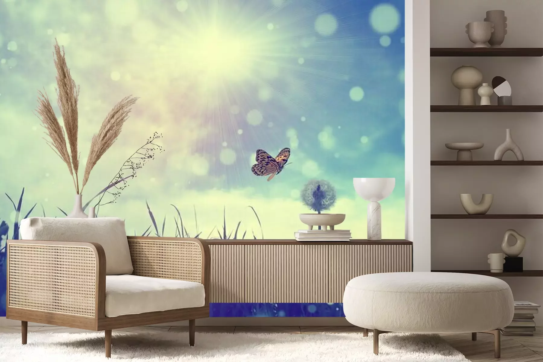 Het materiaal Premium+ is een gestructureerd vinyl op vlies met een gewicht van 255 g/m², dat kleine oneffenheden in de muur effectief camoufleert. De subtiele structuur van fijn zand geeft het oppervlak een exclusieve uitstraling, terwijl de halfmatte afwerking de diepte van de kleuren benadrukt. Het materiaal is dampdoorlatend, waardoor het ook in de keuken en badkamer kan worden gebruikt. De maximale breedte van één baan bedraagt 100 cm – bij grotere afmetingen wordt het fotobehang in meerdere gelijke banen verdeeld. De lijm wordt direct op de muur aangebracht en het behang wordt rand-aan-rand geplakt, wat zorgt voor een esthetisch resultaat zonder zichtbare naden. Het oppervlak kan gemakkelijk worden schoongemaakt door het voorzichtig af te nemen met een vochtige doek.