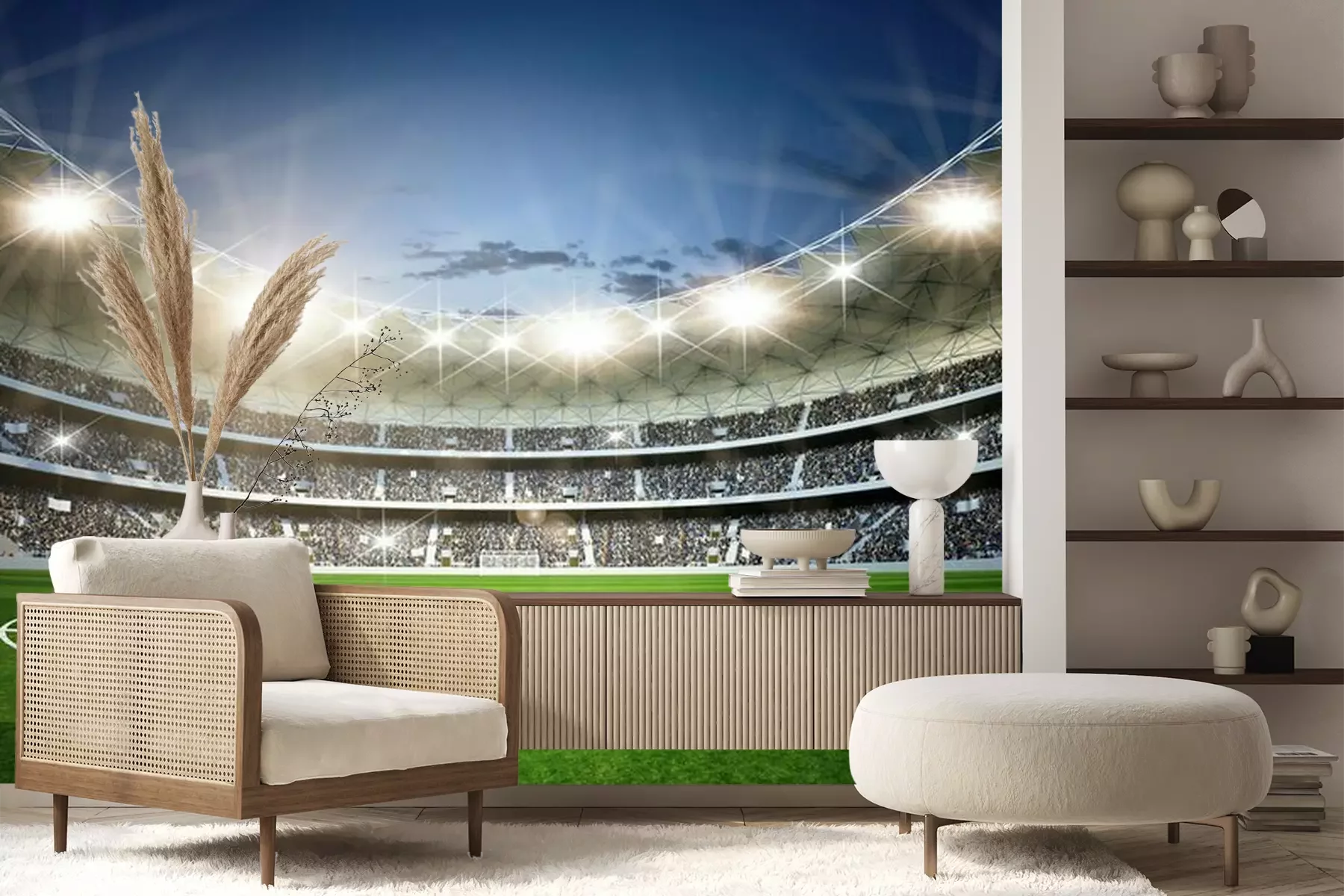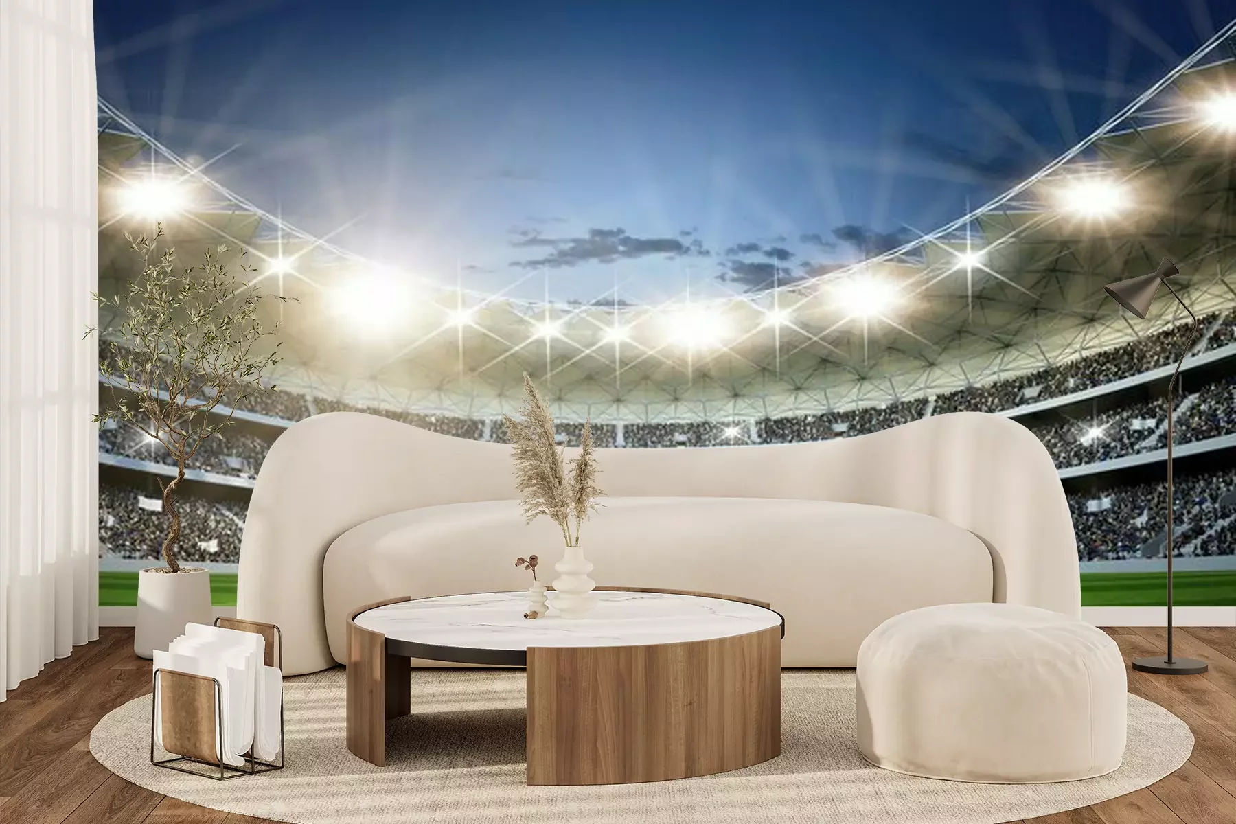 Stadion in 3D in de avondFotobehang