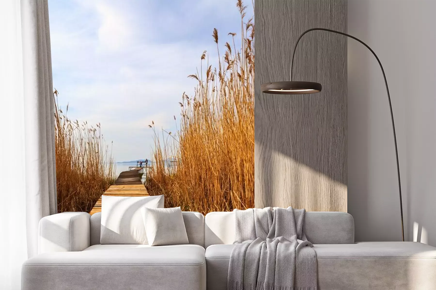 Het materiaal Premium+ is een gestructureerd vinyl op vlies met een gewicht van 255 g/m², dat kleine oneffenheden in de muur effectief camoufleert. De subtiele structuur van fijn zand geeft het oppervlak een exclusieve uitstraling, terwijl de halfmatte afwerking de diepte van de kleuren benadrukt. Het materiaal is dampdoorlatend, waardoor het ook in de keuken en badkamer kan worden gebruikt. De maximale breedte van één baan bedraagt 100 cm – bij grotere afmetingen wordt het fotobehang in meerdere gelijke banen verdeeld. De lijm wordt direct op de muur aangebracht en het behang wordt rand-aan-rand geplakt, wat zorgt voor een esthetisch resultaat zonder zichtbare naden. Het oppervlak kan gemakkelijk worden schoongemaakt door het voorzichtig af te nemen met een vochtige doek.