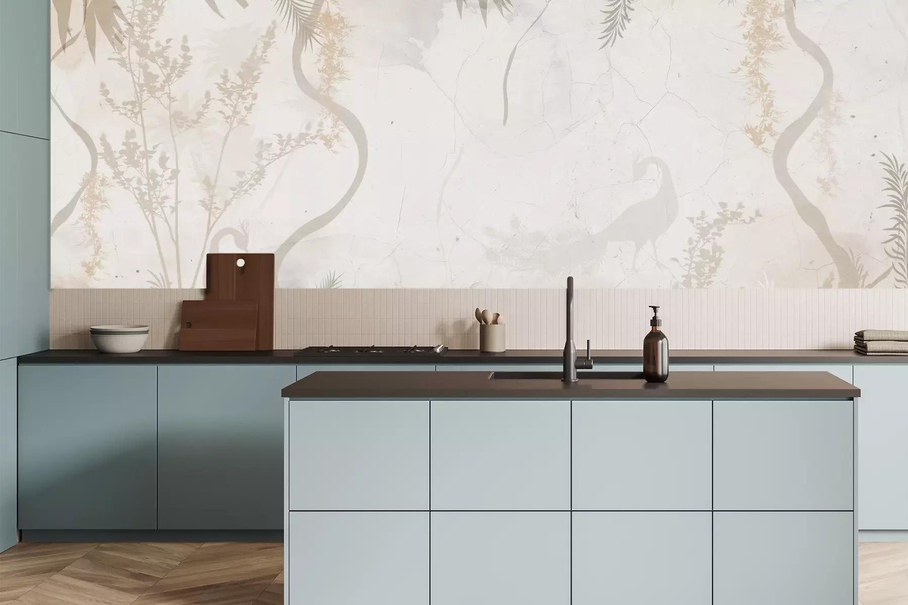 Het materiaal Premium is een glad vinyl op vlies, dat bestand is tegen uitrekken en vervorming. Het is dampdoorlatend – de muren kunnen vrij ademen – waardoor het geschikt is voor gebruik in de keuken en badkamer. Bij vervuiling kan het materiaal worden afgenomen met een vochtige doek. De maximale breedte van één baan bedraagt 95 of 105 cm, afhankelijk van de beschikbaarheid. Montage vindt plaats met de rand-aan-rand methode, wat een esthetisch resultaat zonder zichtbare naden oplevert. Omdat de lijm rechtstreeks op de muur wordt aangebracht, verloopt de installatie van het fotobehang snel en eenvoudig.