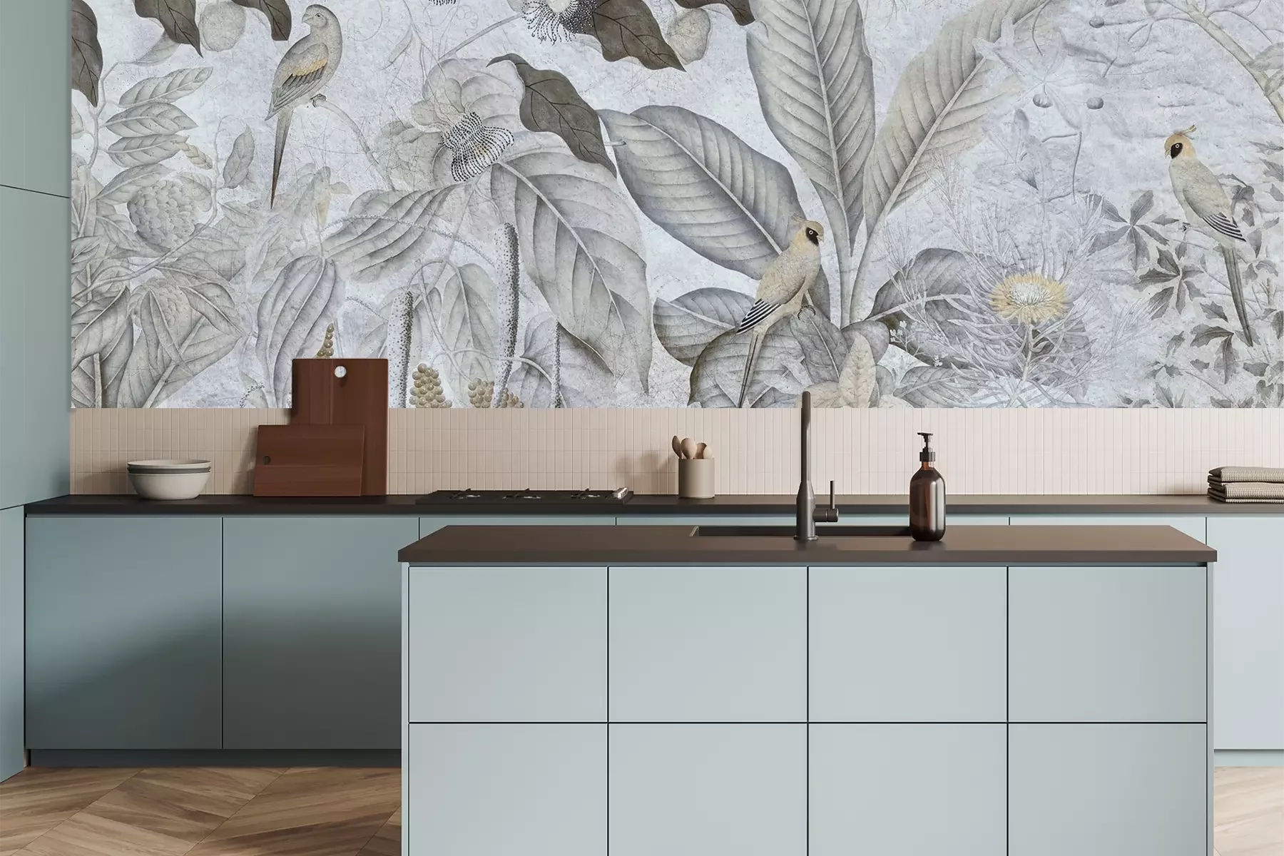 Het materiaal Premium is een glad vinyl op vlies, dat bestand is tegen uitrekken en vervorming. Het is dampdoorlatend – de muren kunnen vrij ademen – waardoor het geschikt is voor gebruik in de keuken en badkamer. Bij vervuiling kan het materiaal worden afgenomen met een vochtige doek. De maximale breedte van één baan bedraagt 95 of 105 cm, afhankelijk van de beschikbaarheid. Montage vindt plaats met de rand-aan-rand methode, wat een esthetisch resultaat zonder zichtbare naden oplevert. Omdat de lijm rechtstreeks op de muur wordt aangebracht, verloopt de installatie van het fotobehang snel en eenvoudig.