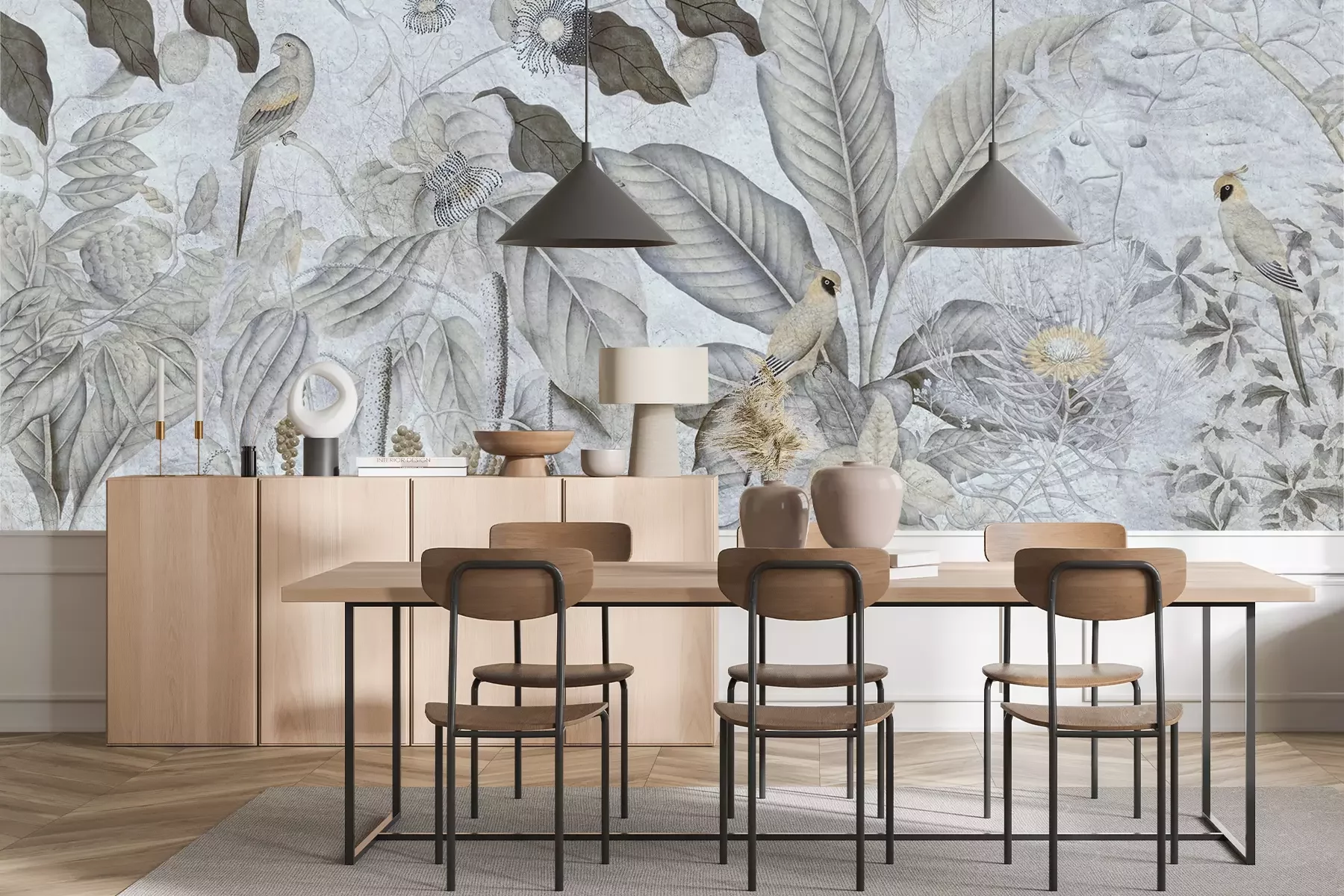 Het materiaal Premium+ is een gestructureerd vinyl op vlies met een gewicht van 255 g/m², dat kleine oneffenheden in de muur effectief camoufleert. De subtiele structuur van fijn zand geeft het oppervlak een exclusieve uitstraling, terwijl de halfmatte afwerking de diepte van de kleuren benadrukt. Het materiaal is dampdoorlatend, waardoor het ook in de keuken en badkamer kan worden gebruikt. De maximale breedte van één baan bedraagt 100 cm – bij grotere afmetingen wordt het fotobehang in meerdere gelijke banen verdeeld. De lijm wordt direct op de muur aangebracht en het behang wordt rand-aan-rand geplakt, wat zorgt voor een esthetisch resultaat zonder zichtbare naden. Het oppervlak kan gemakkelijk worden schoongemaakt door het voorzichtig af te nemen met een vochtige doek.